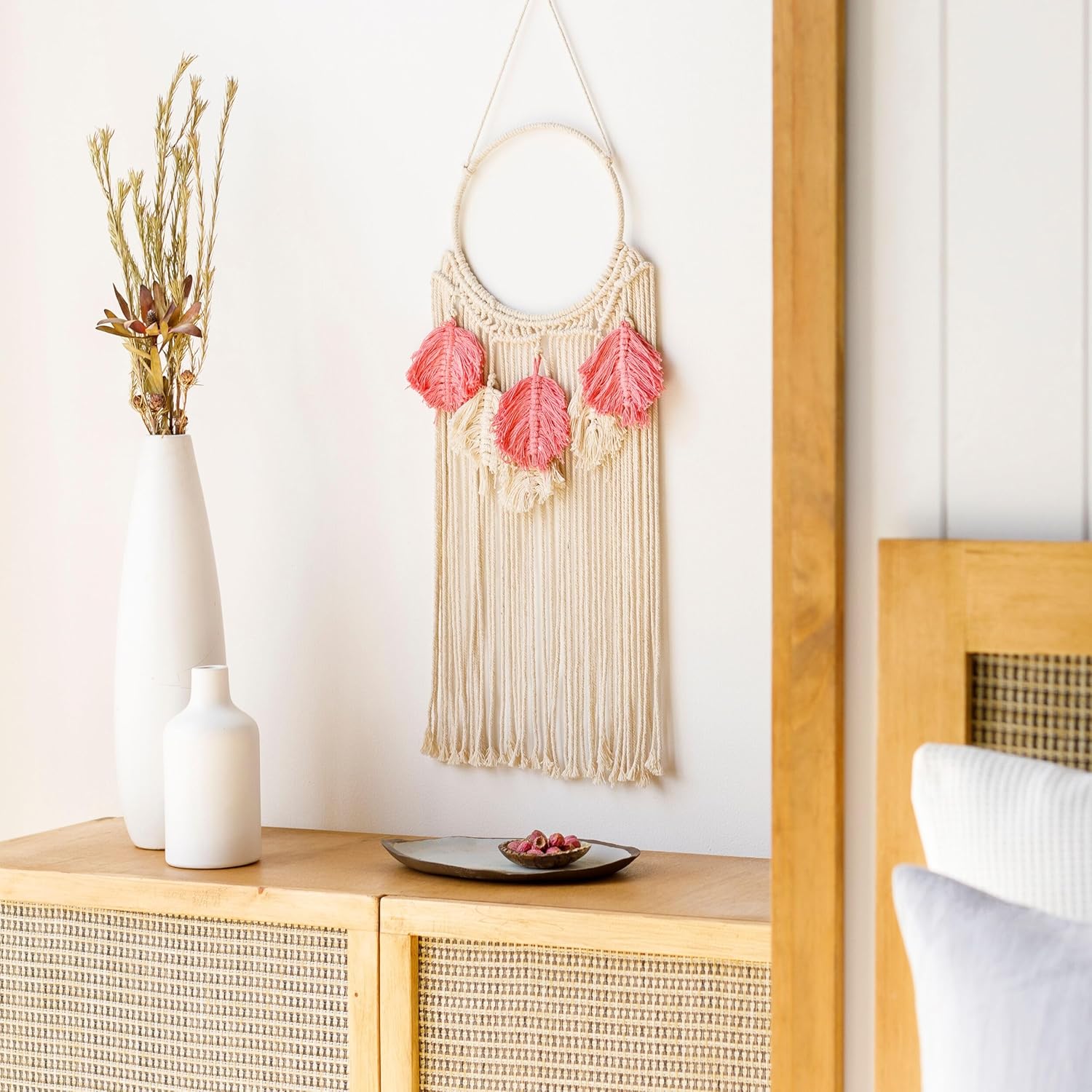 - 【ENHANCE YOUR ROOM DECOR】Elevate your living space with our captivating Wall Hanging. Its versatile design seamlessly blends with existing furniture, creating a cohesive and aesthetically pleasing space. Perfectly complemented by our range of elegant mirrors, cozy pillows, stylish poufs, eye-catching wall art, and chic lamps, our Macrame Tapestry Wall Hanging offers a variety of options to suit your unique taste and elevate your room decor to the next level.
