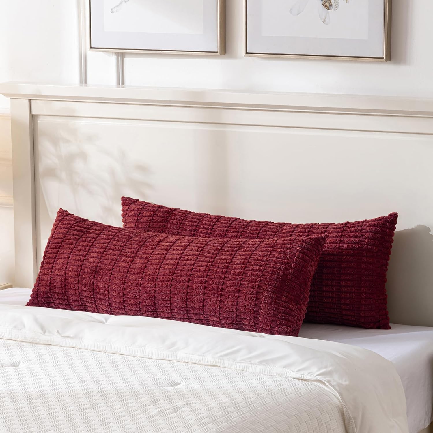 Fancy Homi Burgundy Long Body Lumbar Decorative Throw Pillow Covers 14x36 Inch for Bed Couch Bedroom Bench, Soft Corduroy Rectangle Solid Pillow Case, Rustic Farmhouse Boho Room Decor