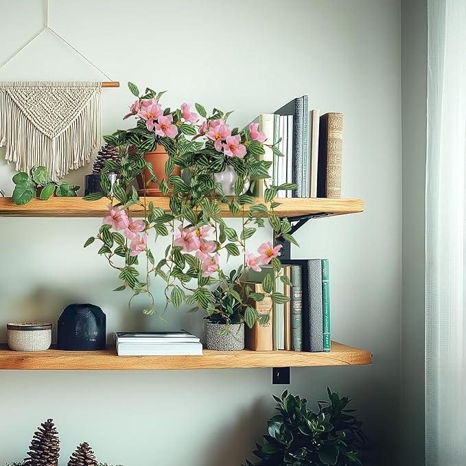 - Faux Hanging Vines: Small potted artificial hanging plants indoor have greenery leaves and the pot that are made of plastic material, realistic in appearance, full of vigor. Maintaining these artificial plants and flowers is easy and does not require watering, pruning, or fertilization. If dust accumulates for a long time, just wipe it with a damp cloth. It will continue to stay fresh, adding comfort and greenery to the home.