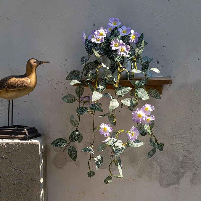 - Faux Hanging Vines: Small potted artificial hanging plants indoor have greenery leaves and the pot that are made of plastic material, realistic in appearance, full of vigor. Maintaining these artificial plants and flowers is easy and does not require watering, pruning, or fertilization. If dust accumulates for a long time, just wipe it with a damp cloth. It will continue to stay fresh, adding comfort and greenery to the home.