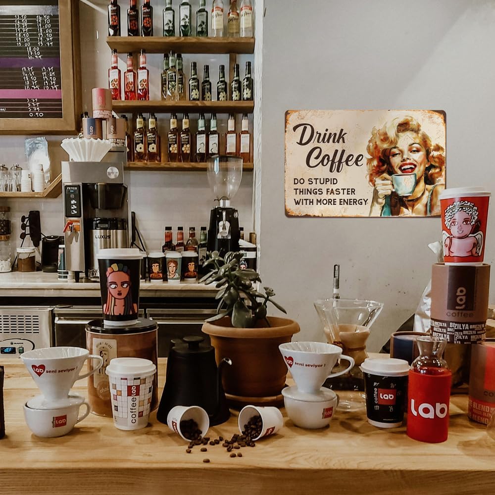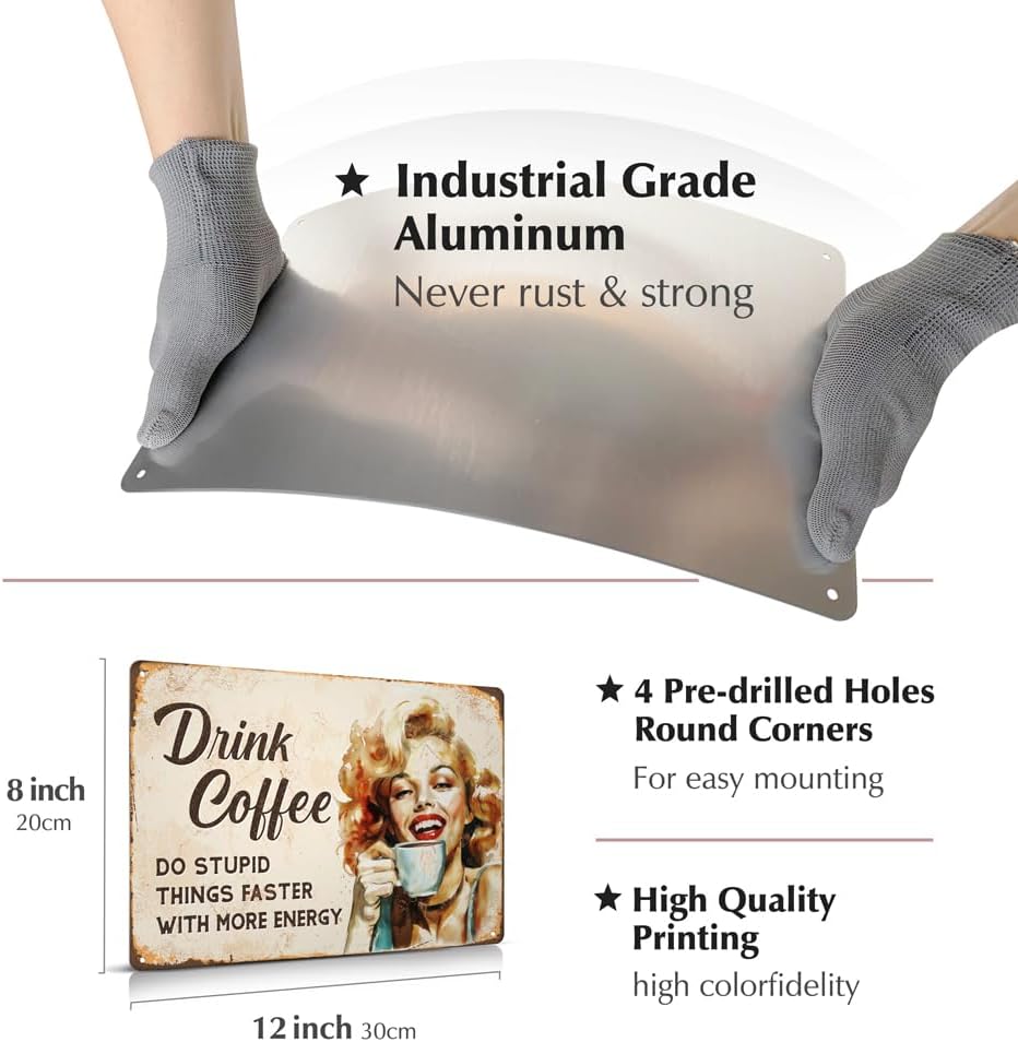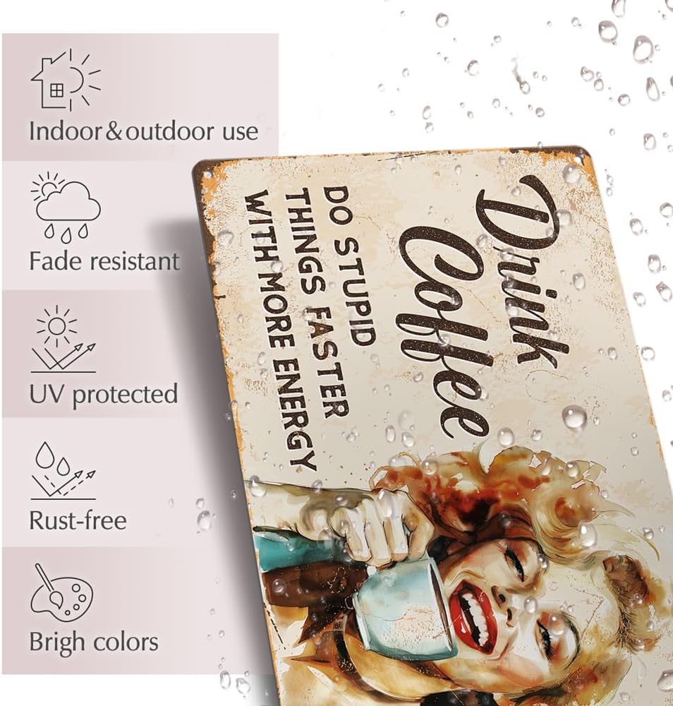 - COFFEE BAR DECOR:This metal sign design with humorous message,bright colors,and weather-resist.A cute decoration for home office coffee bar kitchen