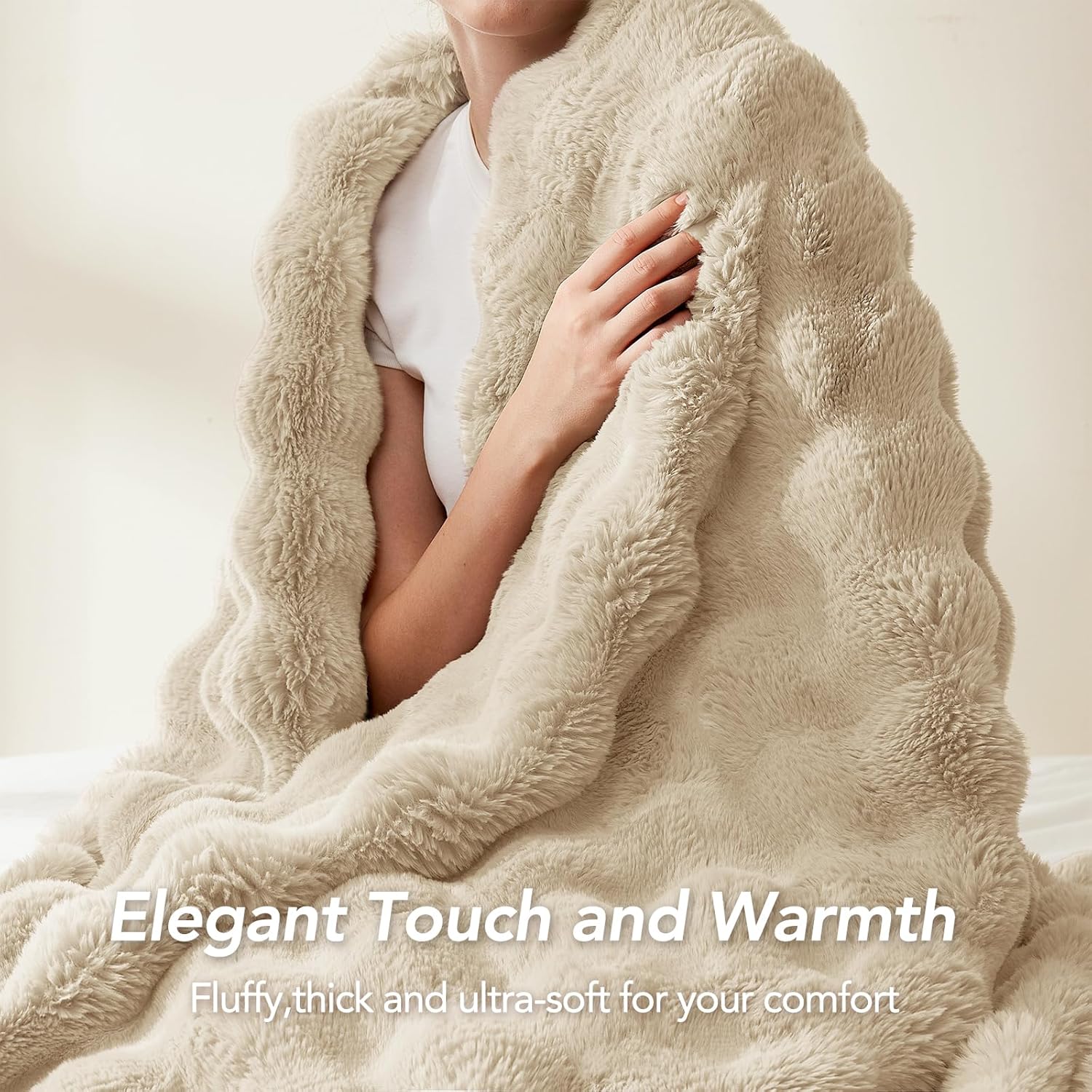- Ultra Soft & Furry: Our Rabbit Fur Thick Blanket is soft to the touch and perfect for snuggling up on the couch or bed in cold weather, making you feel like you're on a cloud. The bubble faux rabbit fur blanket is made of 650GSM premium microfiber polyester, which is extra soft, fuzzy, and fluffy, making it the perfect companion to keep you warm during the fall and winter months