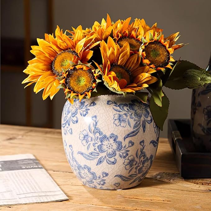 Blue and White Vases, Ceramic vases for Home Decor, Farmhouse Flower vase, Blue vase for Living Room Decor, Vintage Vase for Console Table Mantle Chinoiserie Decor