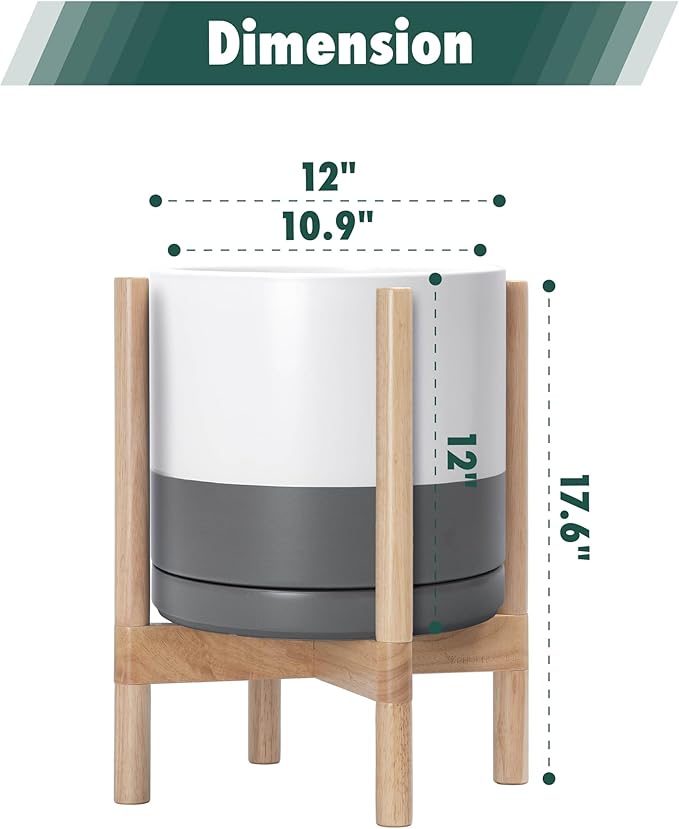 - A Complete Set: Mid-century ceramic planter, combined with a natural color, sculptural, solid wood stand that match perfectly together and looks great in anywhere.