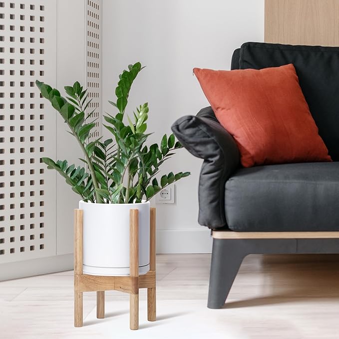 - A Complete Set: Mid-century ceramic planter, combined with a natural color, sculptural, solid wood stand that match perfectly together and looks great in anywhere.