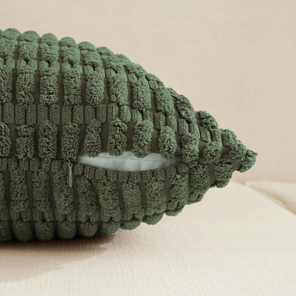 Fancy Homi Boho Olive Green Decorative Throw Pillow Covers 12x20 Inch for Couch Bed Sofa, Rustic Modern Farmhouse Home Decor, Soft Plush Corduroy Cute Square Cushion Case 30x50 cm