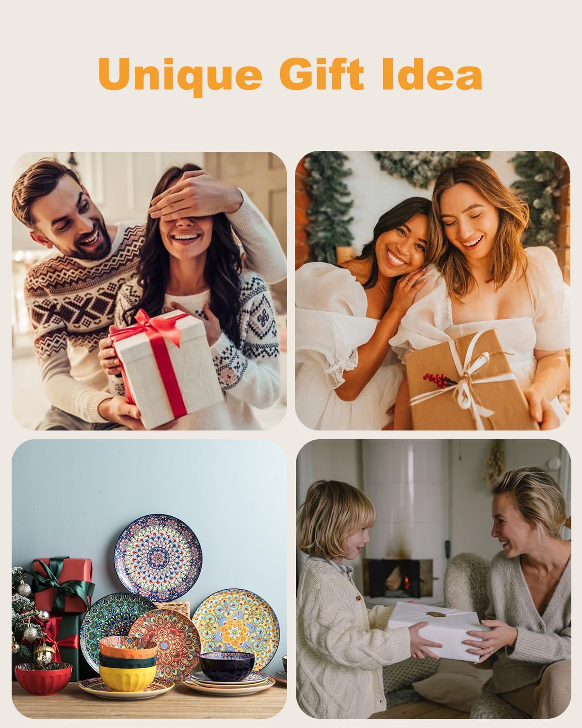 Dinner Plate Set of 6, 10.5-inch Large Plate for Dessert, Pasta, Salad, Ceramic Bohemian Dishes for Kitchen Microwave Dishwasher Safe