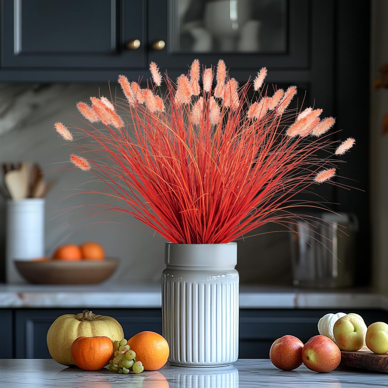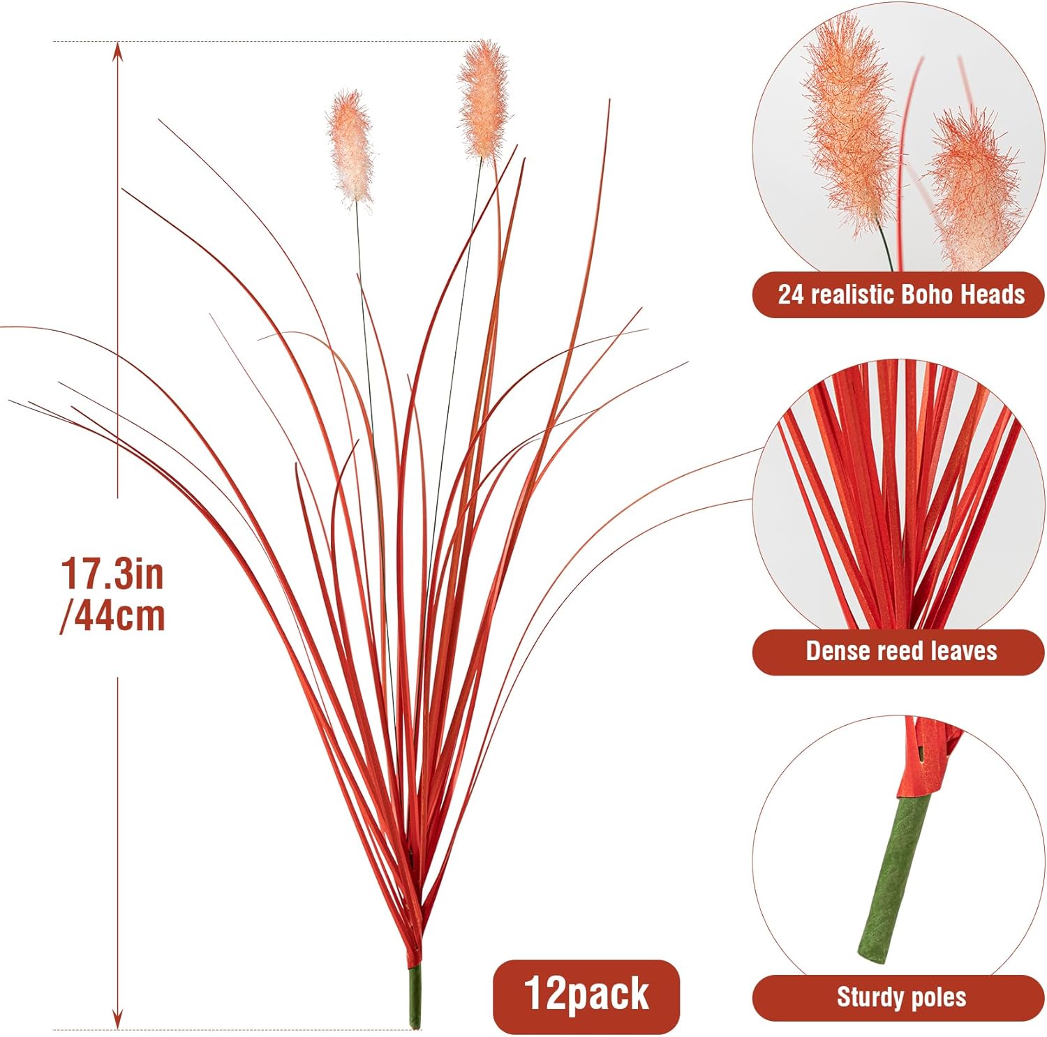 Fake Grass Fall Flowers Artificial Shrubs Artificial Grass Wheatgrass Cattails Fake Grass Decorations Artificial Plants Ornamental Grass Outdoor Grass Green Leafy Decorations (12PCS)Orange