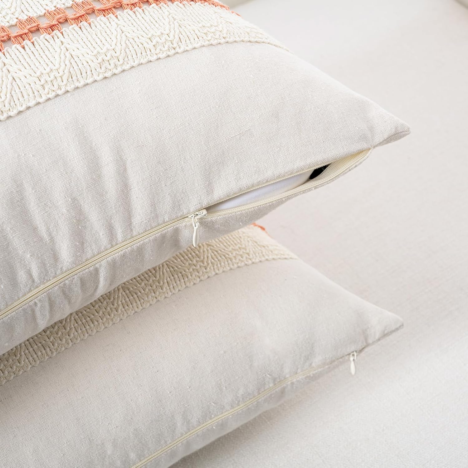 Fancy Homi Set of 2 Boho Coral Decorative Throw Pillow Cover 20x20 Inch for Couch Bed Sofa, Aesthetic Modern Organic Farmhouse Home Decor, Soft Cotton Cute Accent Macrame Woven Cushion Case