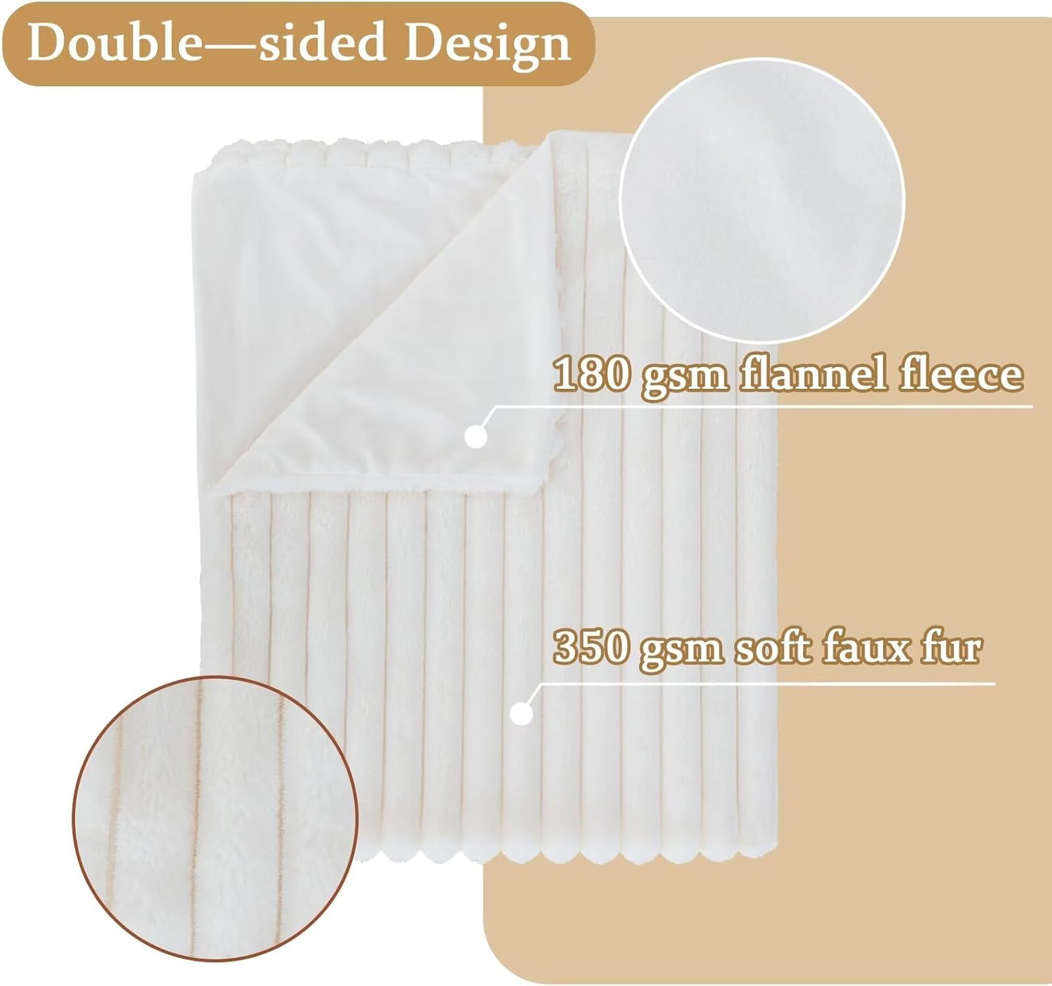 Cream White Faux Fur Throw Blanket for Couch, Fuzzy Cozy Soft Warm Plush Striped Throw Blanket, Christmas Decorative Fluffy Winter Blanket for Sofa Bed Living Room Home Decor, 60"x80"