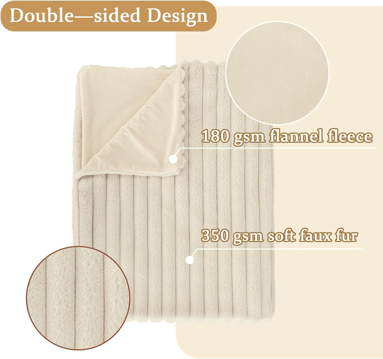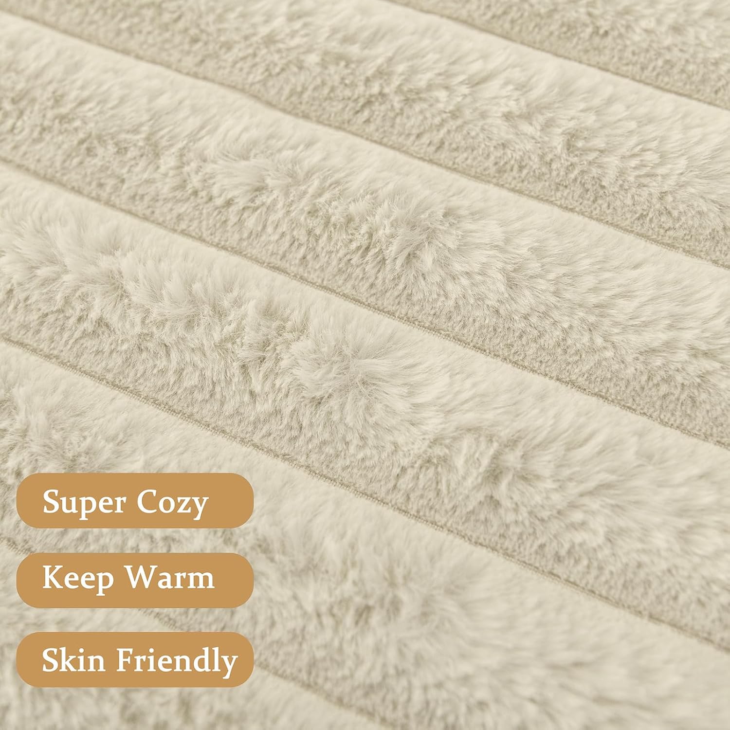 Beige Faux Fur Throw Blanket for Couch, Fuzzy Cozy Soft Warm Plush Striped Throw Blanket, Decorative Fluffy Winter Blanket for Sofa Chair Bed Living Room Home Decor, 60"x80"