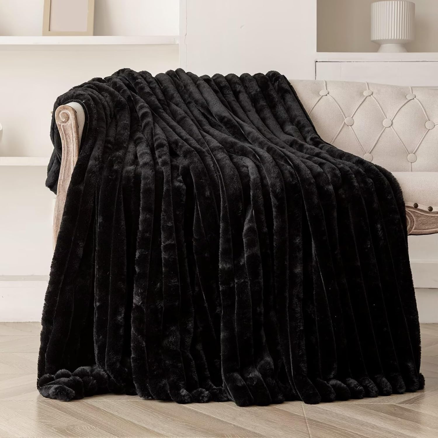 Black Halloween Faux Fur Throw Blanket for Couch, Fuzzy Cozy Soft Warm Plush Striped Throw Blanket, Decorative Fluffy Winter Blanket for Sofa Chair Bed Living Room Home Decor, 50"x60"
