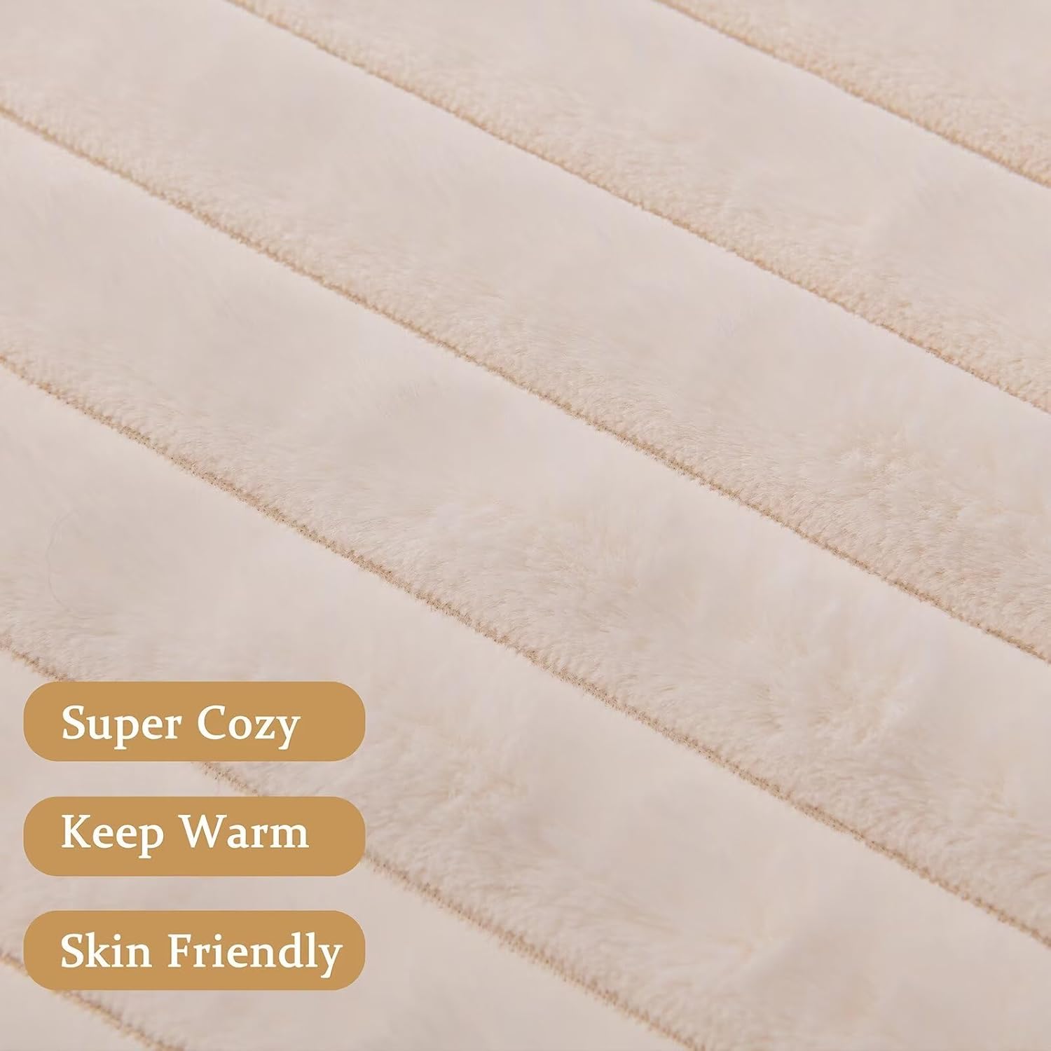 Cream White Faux Fur Throw Blanket for Couch, Fuzzy Cozy Soft Warm Plush Striped Throw Blanket, Christmas Decorative Fluffy Winter Blanket for Sofa Bed Living Room Home Decor, 50"x60"
