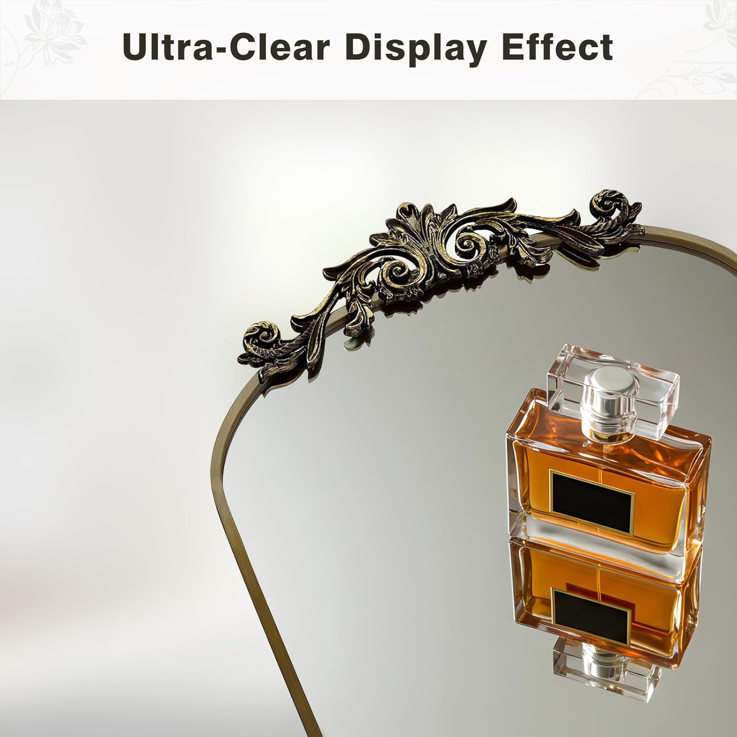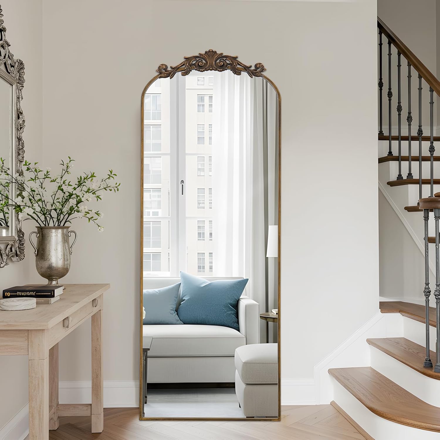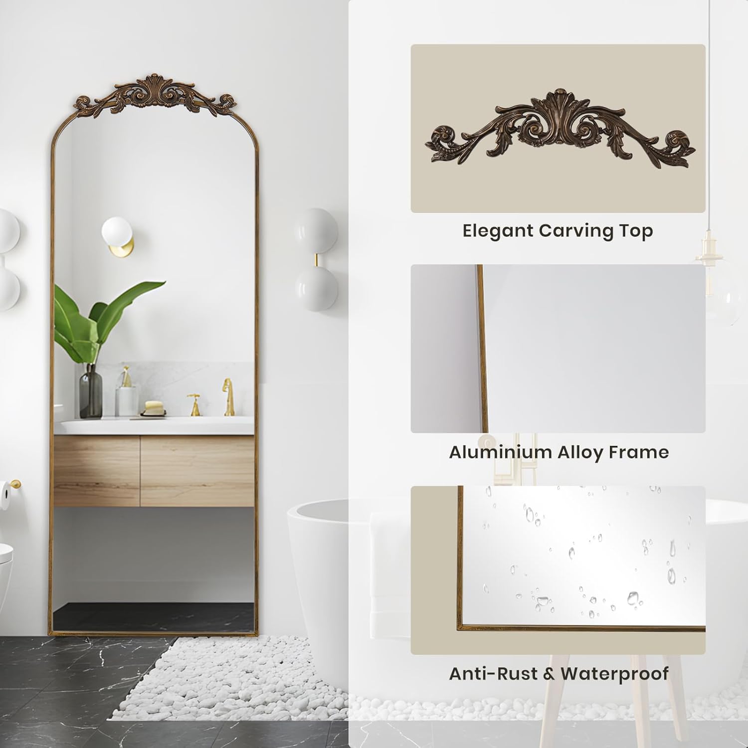 - Bronze Aluminum Alloy Framed Floor Mirror with Vintage Ornate Carved Applique: The full length standing mirror features a modern style that can complement any type of room decor, adding a touch of elegance to your room, move light around and create the illusion of depth and space. This full body mirror with sleek looking is also great for selfies or pictures in general
