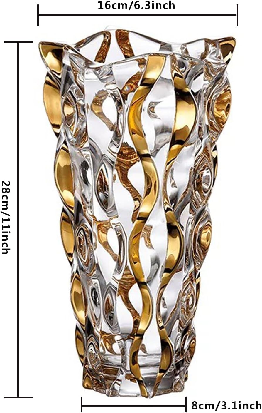 Hand Painted Gold Vase 11" Tall,Flower Vase Decor for Home Dining Table Living Room,Office Wedding Holiday Party,Handmade Decorative Flower Vase.