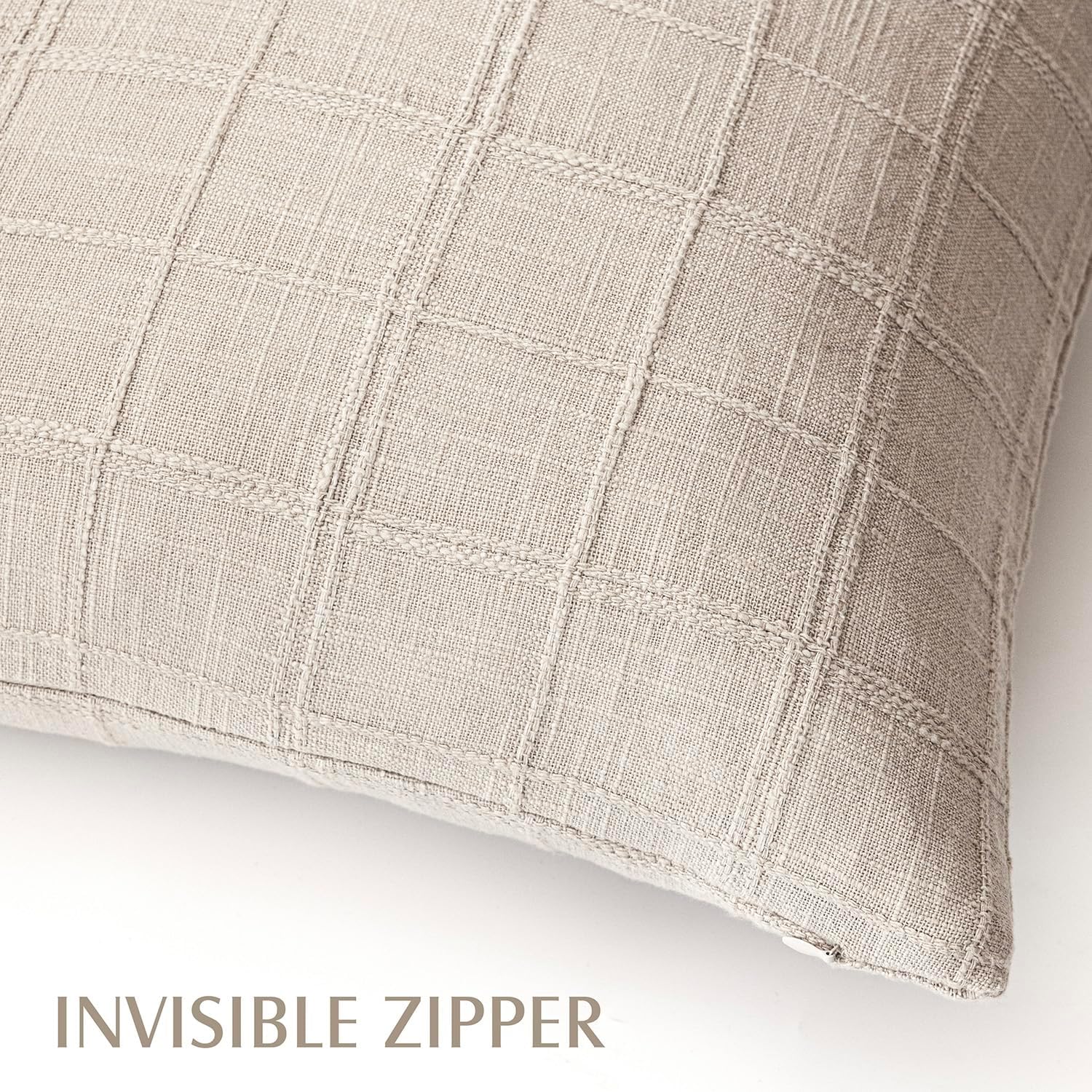 Foindtower Set of 2 Decorative Linen Check Throw Pillow Covers Neutral Farmhouse Vintage Cushion Covers Modern Boho Home Decor for Sofa Chair Couch Bedroom Living Room,24×24 Inch,Natural Linen