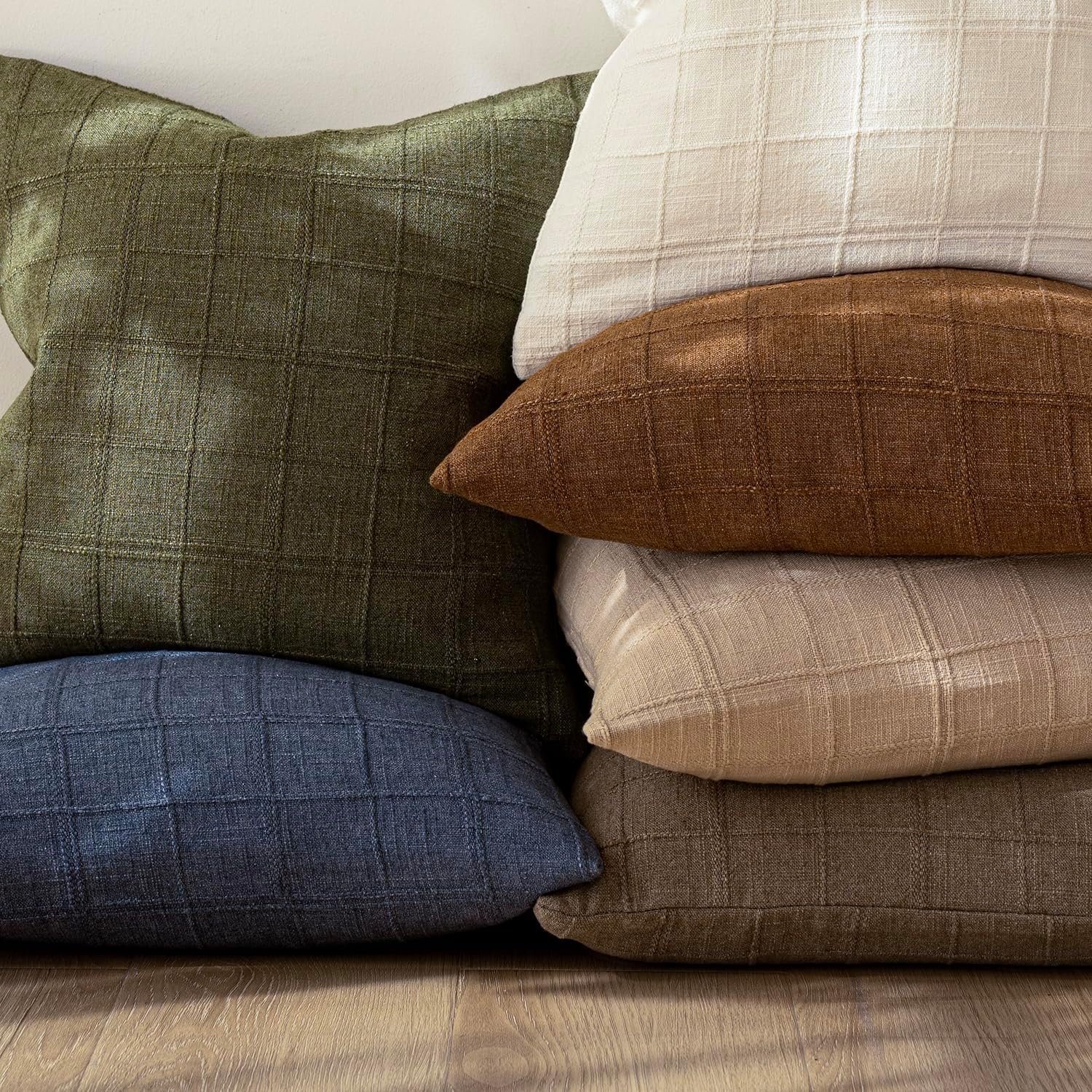 Foindtower Set of 2 Decorative Linen Check Throw Pillow Covers Neutral Farmhouse Vintage Cushion Covers Modern Boho Home Decor for Sofa Chair Couch Bedroom Living Room,24×24 Inch,Light Brown