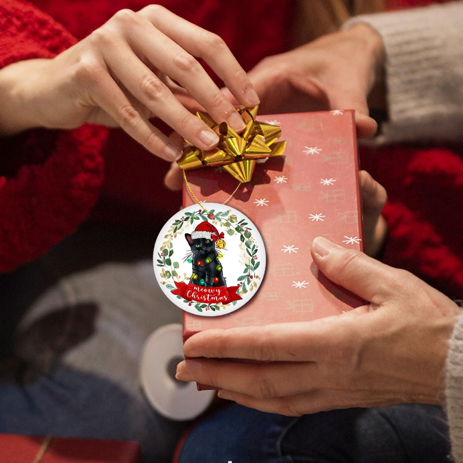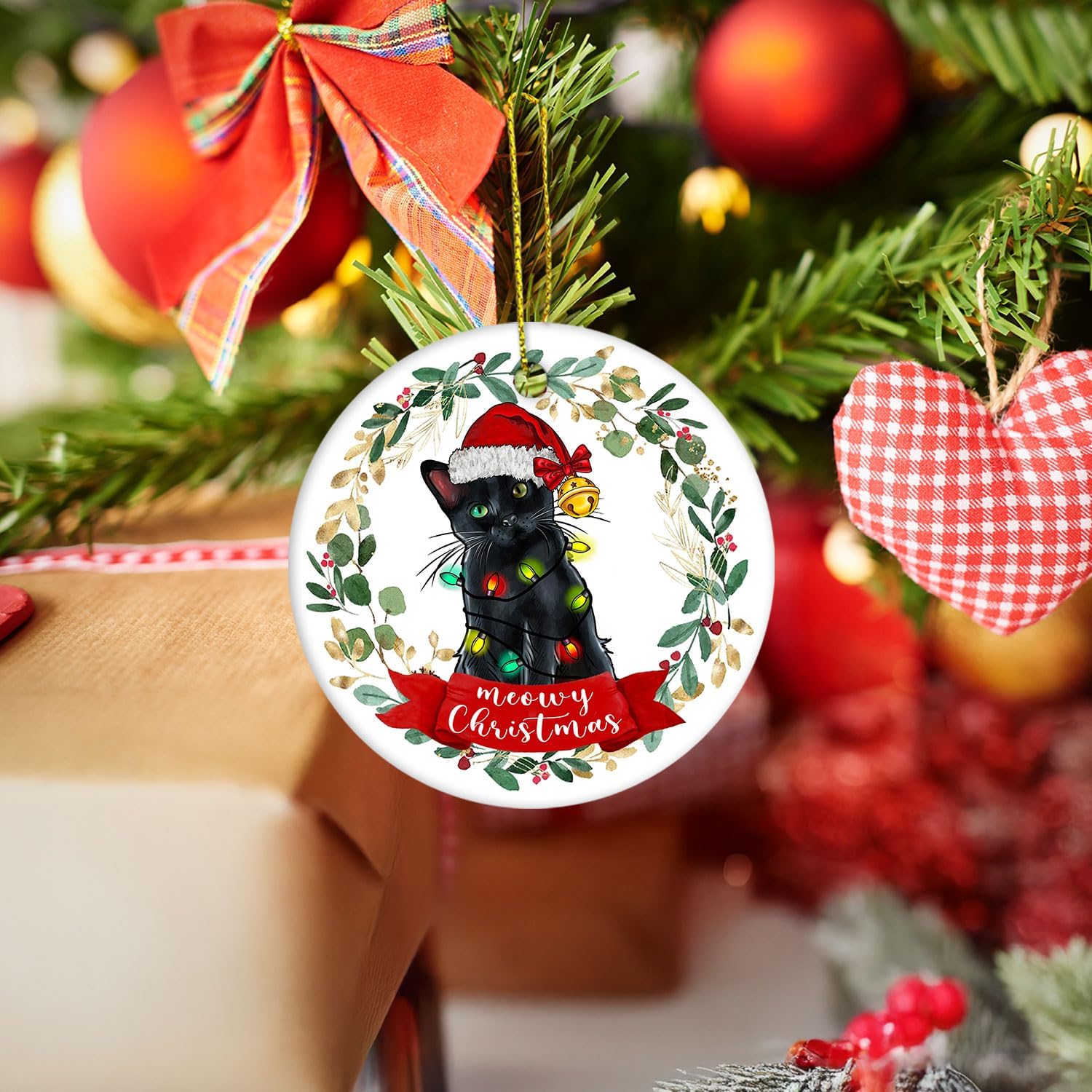 Black Cat Christmas Ornament - Meowy Christmas Tree Decoration, Cat Gifts and Decor, Hanging Ornament