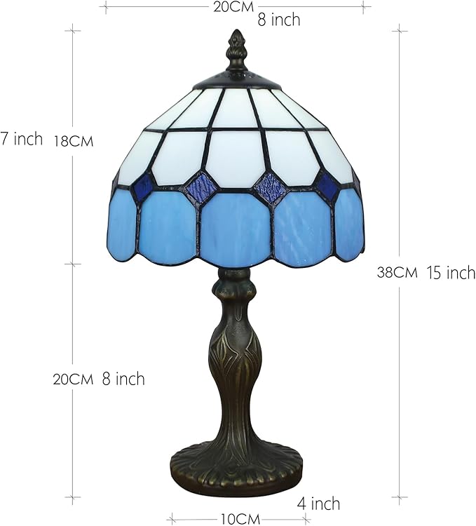Tiffany Table Lamp 8'', Blue Tiffany Style Table Lamp for Bedroom Study Office Home Stained Glass Lamp
