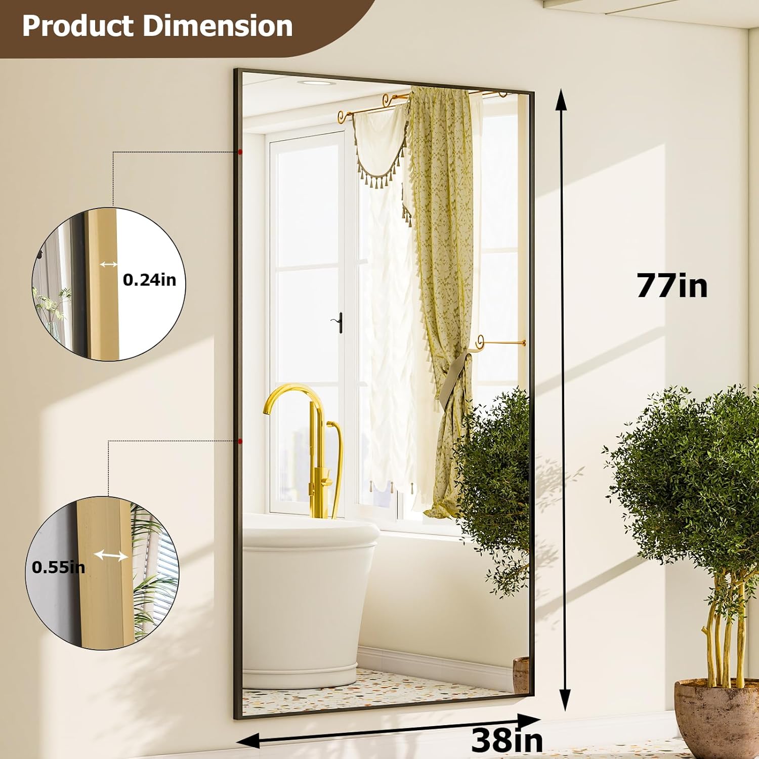 - Spacious Reflection: The generous size of 38 inches by 77 inches provides a full-body view, making it ideal for dressing, grooming, and showcasing your outfits. Perfect for bedrooms, living rooms, or entryways