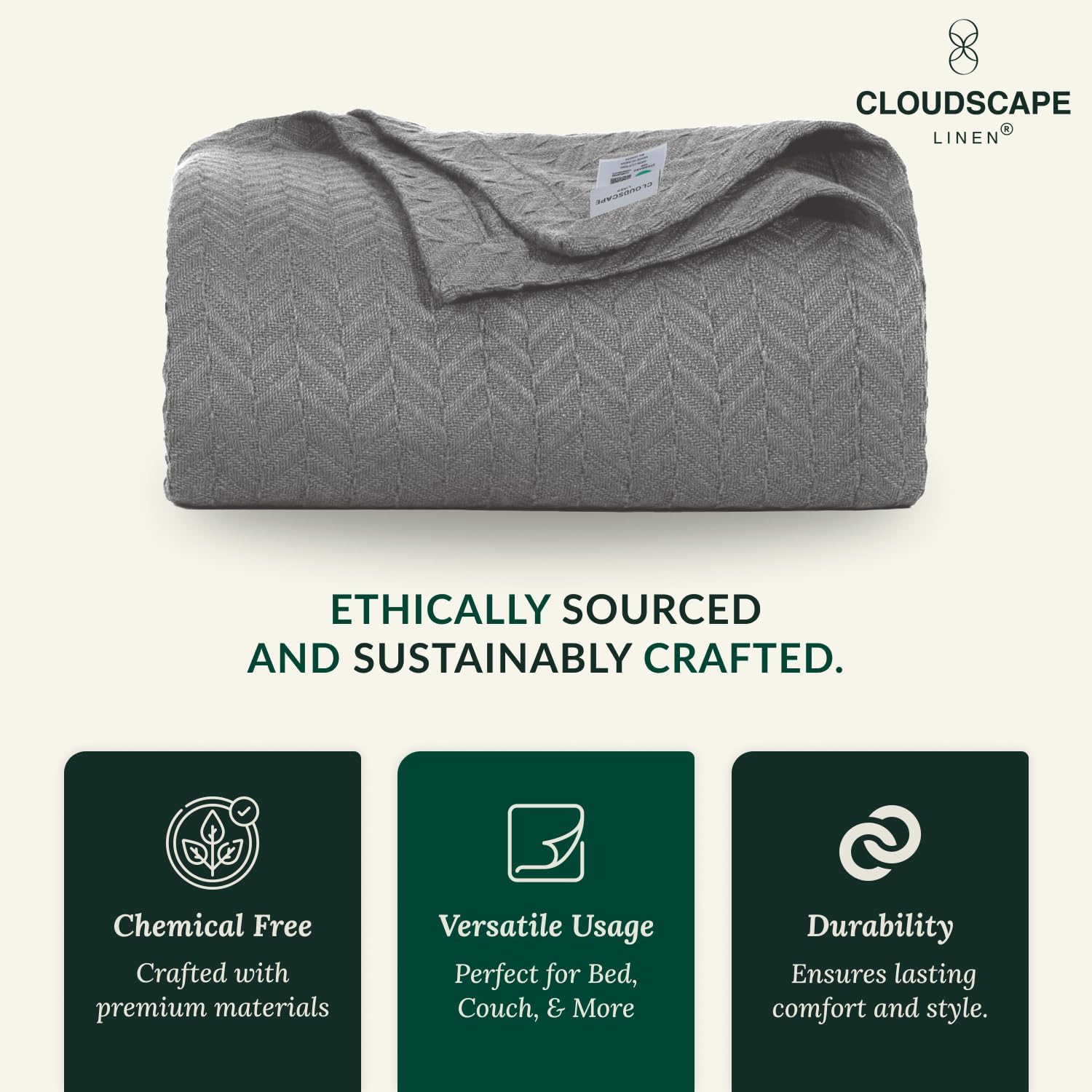 Cloud Scape Linen Herringbone Cotton Throw Blanket for Couch, Bed,Sofa, Home Decor, Soft, Lightweight, All-Season Bed Blanket, 50 x 70, Dark Grey