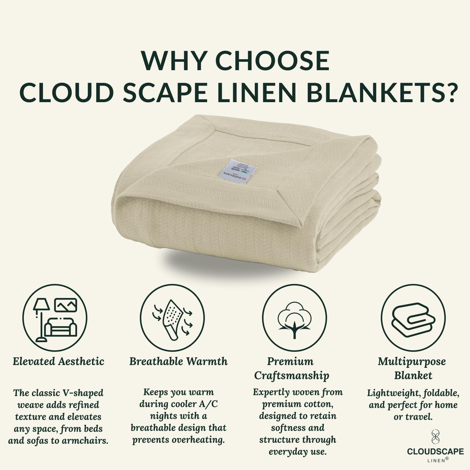 Cloud Scape Linen 100% Cotton Blanket King Size for Bed – Lightweight All Season Blanket, Herringbone Weave, for Women, Mom, Men, fits California King, 92x108, Beige Fog