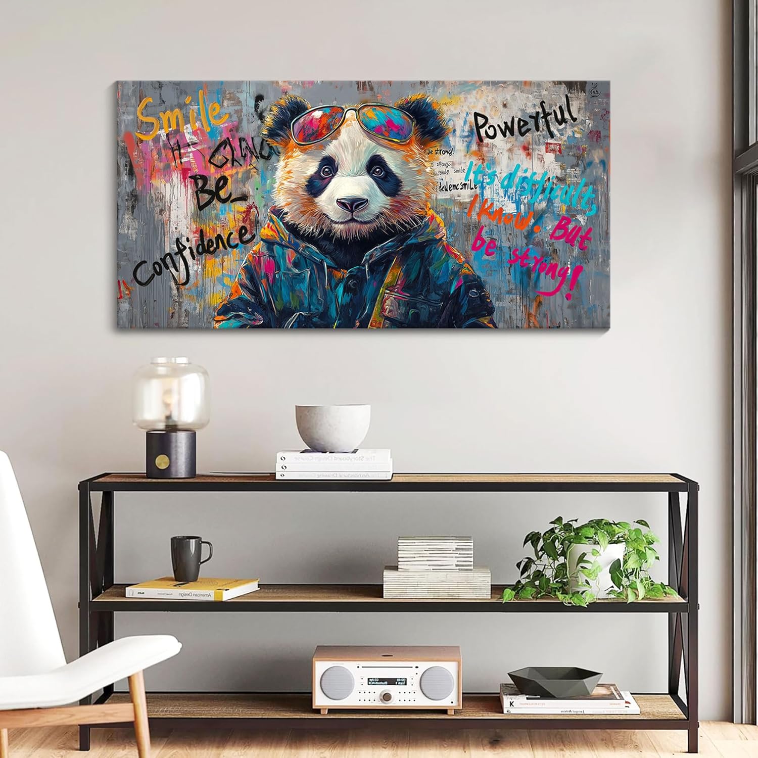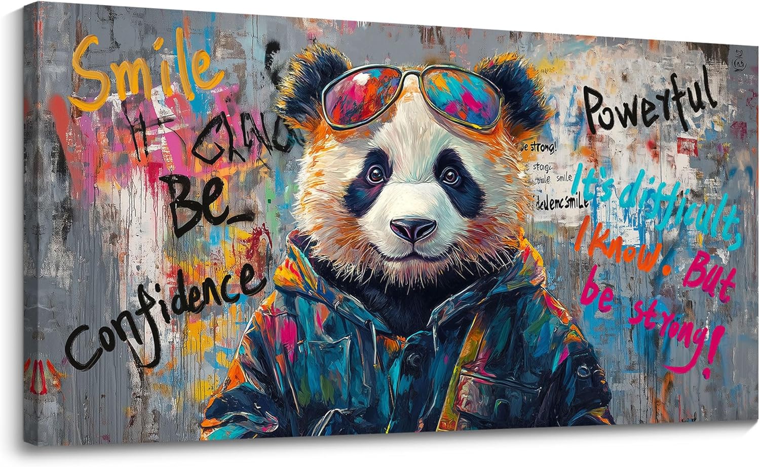 - High-Quality Canvas Art Wall Decor: Made from premium quality canvas, it ensures durability and longevity. The canvas provides a smooth surface that enhances the vividness and texture of the animal and details of the panda hair glasses graffiti. It is resistant to fading, allowing you to enjoy this beautiful canvas art piece for years to come.