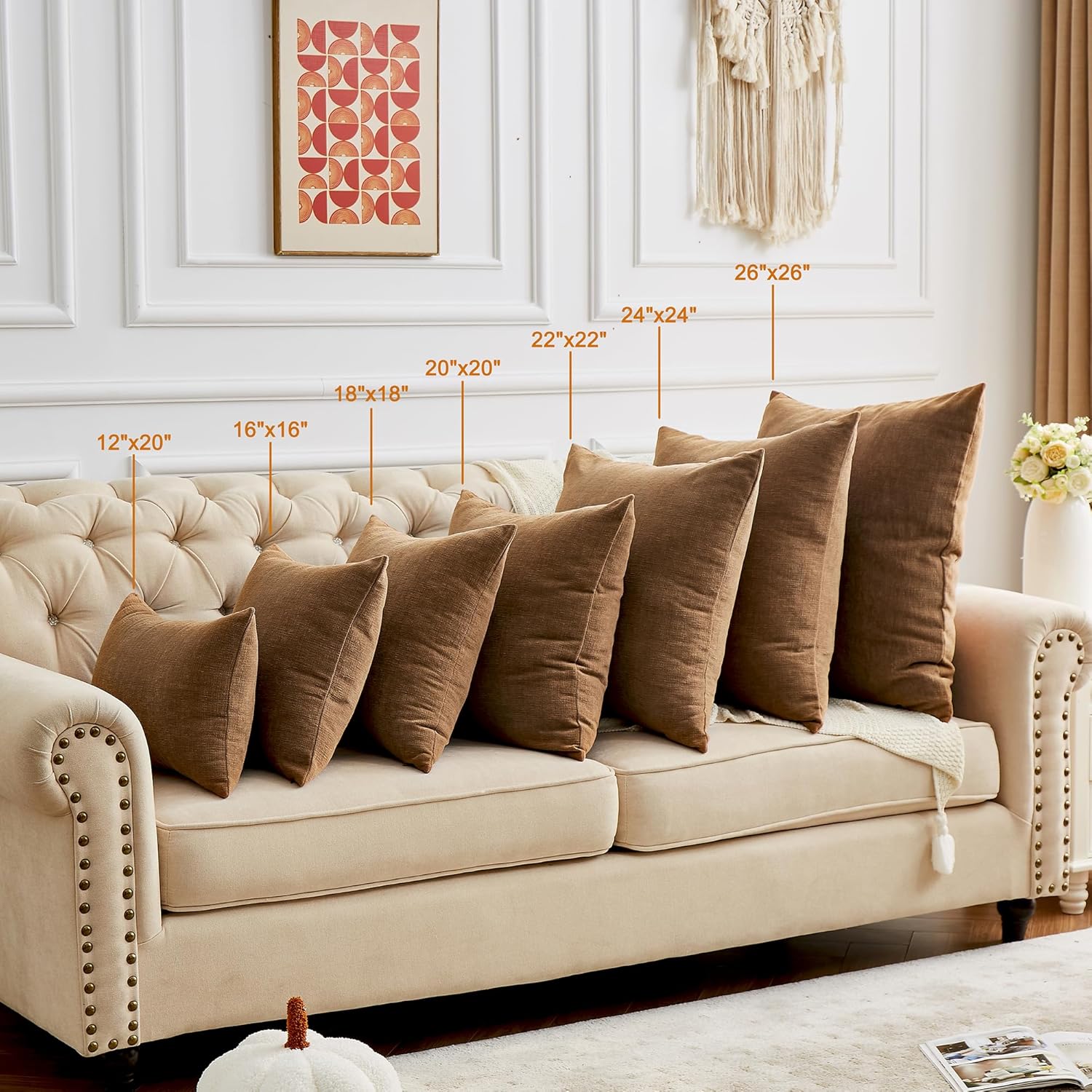 GAWAMAY Decorative Square 16x16 Inch Throw Pillow Covers Set of 2, Super Soft Chenille Pillows Farmhouse Fall Pillowcase for Living Room Bedroom Sofa Couch Cushion Cover Brown 40x40cm (No Inserts)