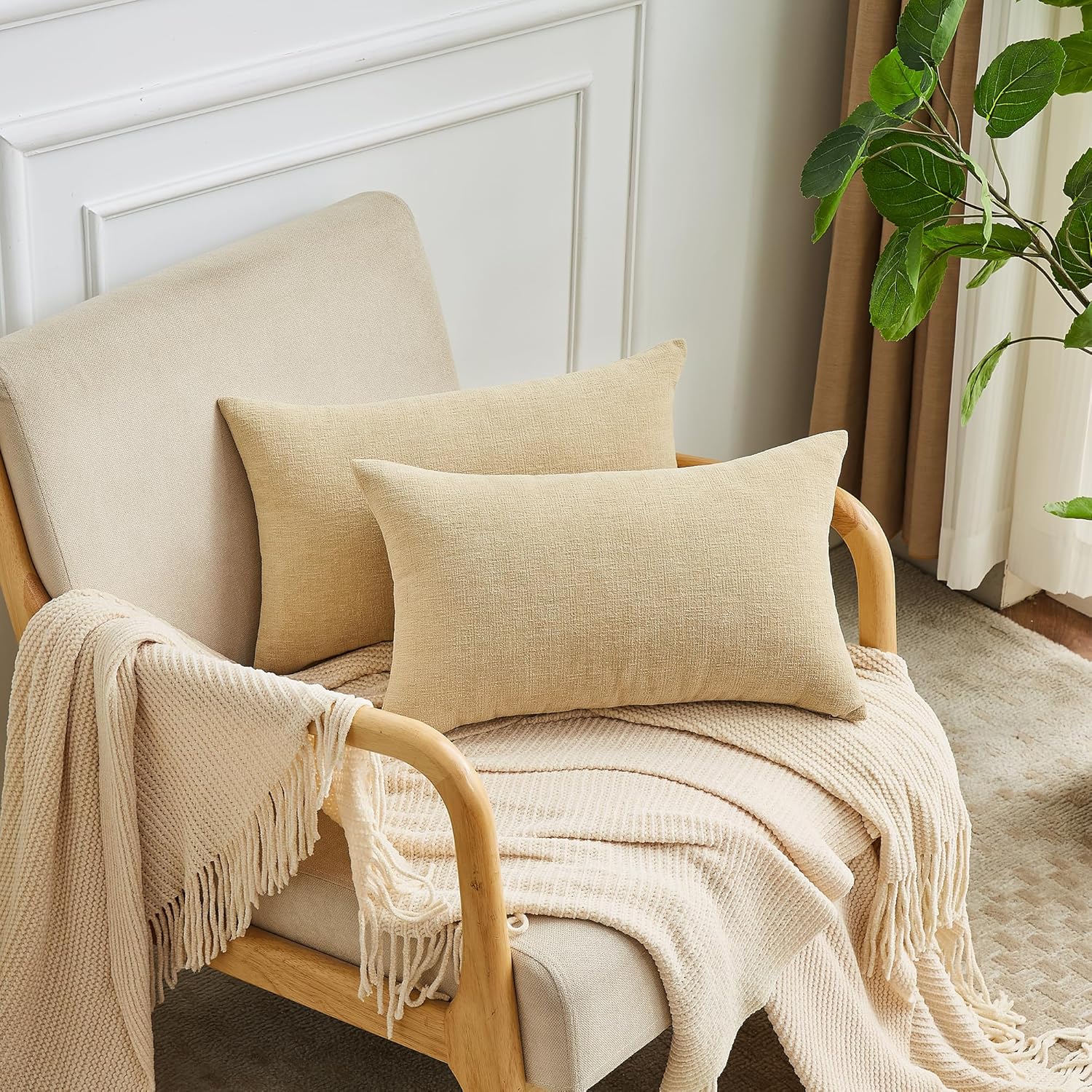 GAWAMAY Lumbar Decorative Throw Pillow Covers 12"x20" Inch Set of 2, Super Soft Chenille Rectangle Pillowcase for Living Room Bedroom Sofa Couch Cushion Support Pillow Cover 30x50cm Khaki (No Insert)