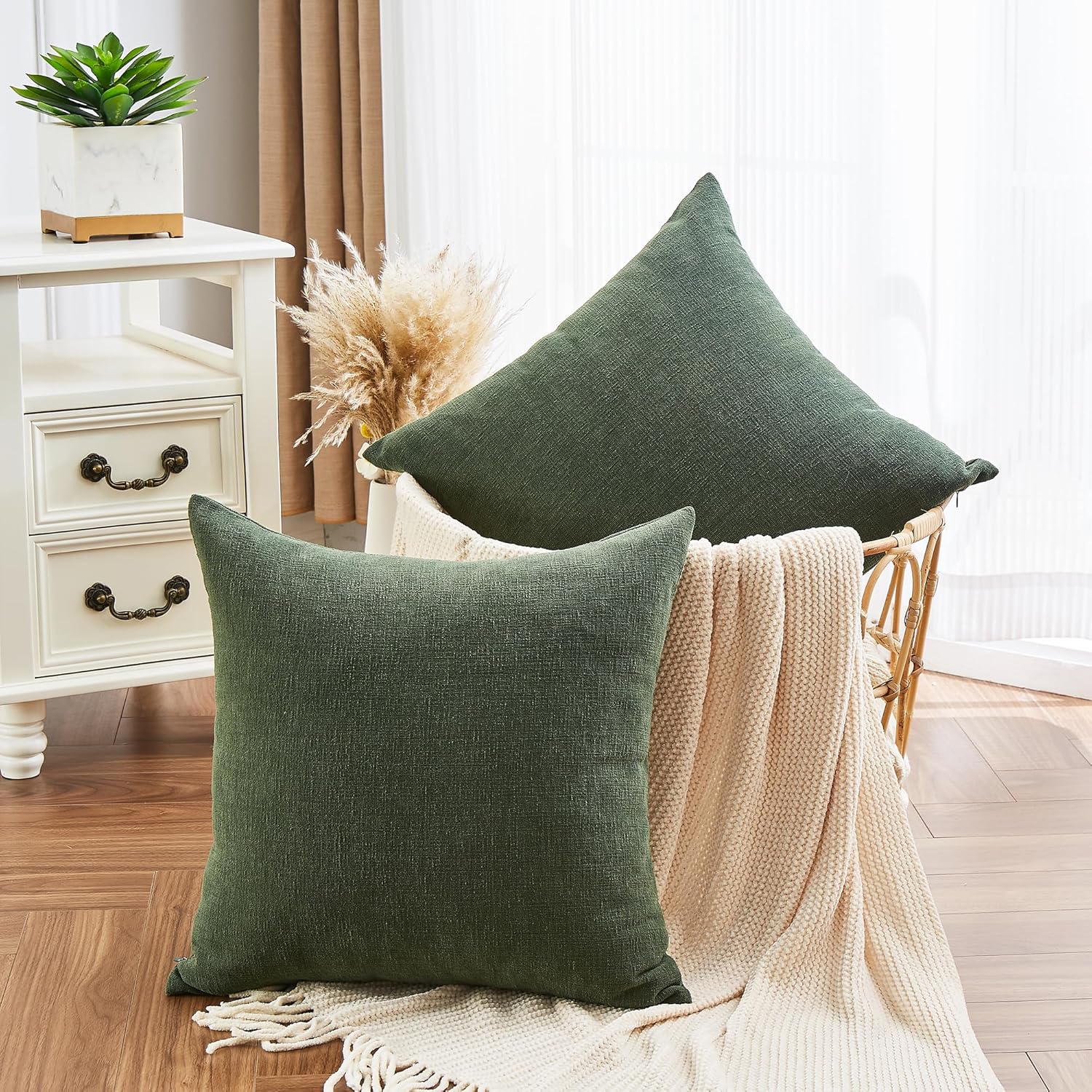 GAWAMAY Decorative Square Throw Pillow Covers 20"x20" Inch Set of 2, Super Soft Chenille Pillows Farmhouse Pillowcase for Living Room Bedroom Sofa Couch Cushion Cover Dark Green 50x50cm (No Insert)