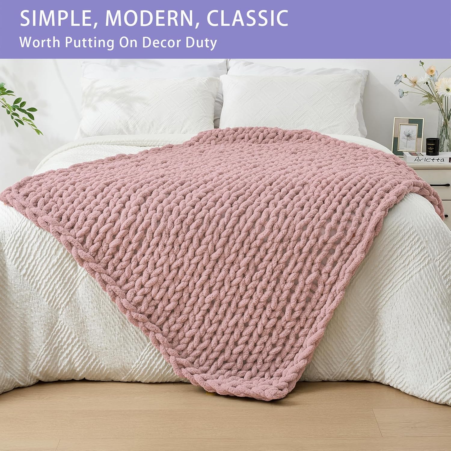 - No Shedding, No Stiffness, No Prickly: Our soft thick blankets and throws are knitted with premium chenille yarn to prevent shedding and stiffness, on chilly days, wrap you and your loved ones in the chunky blanket and enjoy this cuddly throw together