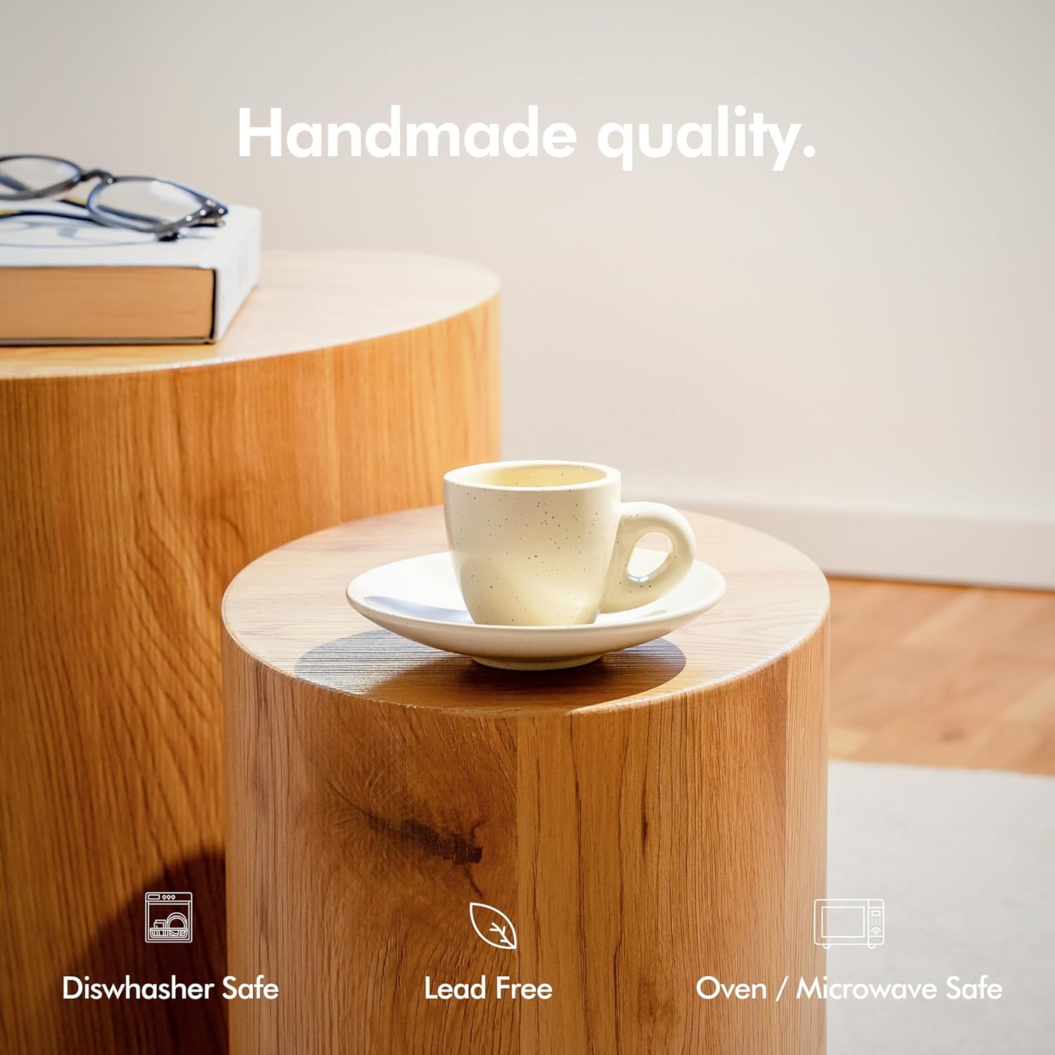KIVY 3 oz Espresso cups set of 4 - Thick walled stoneware espresso cup set - Italian style espresso cups and saucers - Demitasse cups set of 4 - Coffee mugs - Demitasse cups and saucers sets