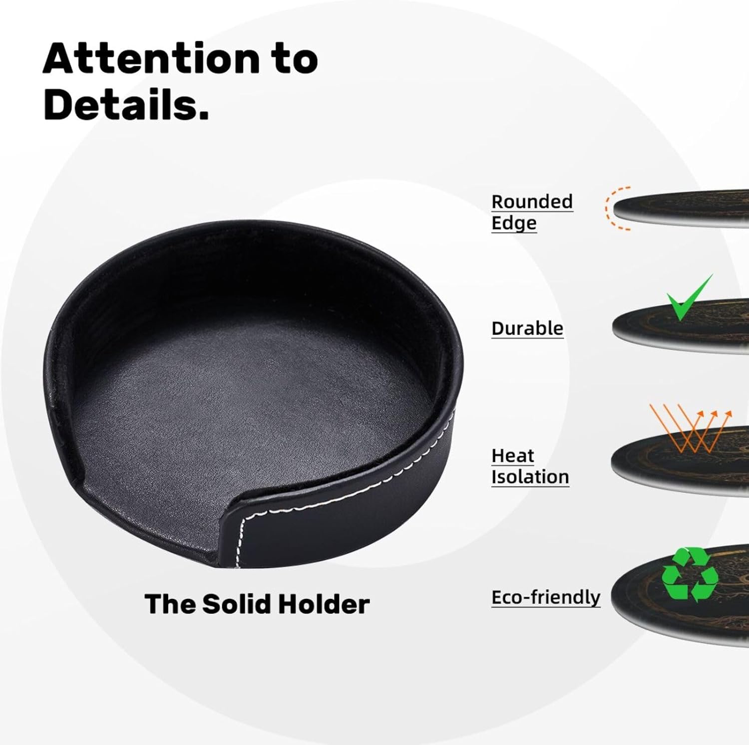 - Holder Included : Coasters Set Includes 6 Pieces Coasters And Coaster Holder, Neatly Stack Coasters In The Holder When Not In Use, Makes Coasters Look Better Organized, Also Make Your Desktop Tidier And Save Space.