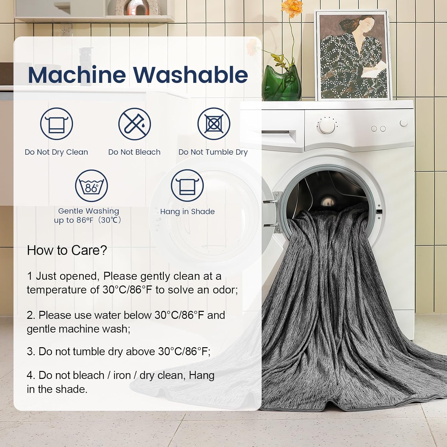 - EASY TO CARE: Just opened, there may be an odor, please gently clean at a temperature of 86 ℉ to solve it. Cool materials cannot withstand high temperatures, so please dry in a low temperature place, NOT drying in dryer, NOT ironing, NOT dry cleaning, NOT bleaching. Please put the blanket inside a laundry net bag, to prevent entanglement and damage. NOTE: Not washing the blanket every day, as frequent washing of the blanket will result in a decrease in cooling performance