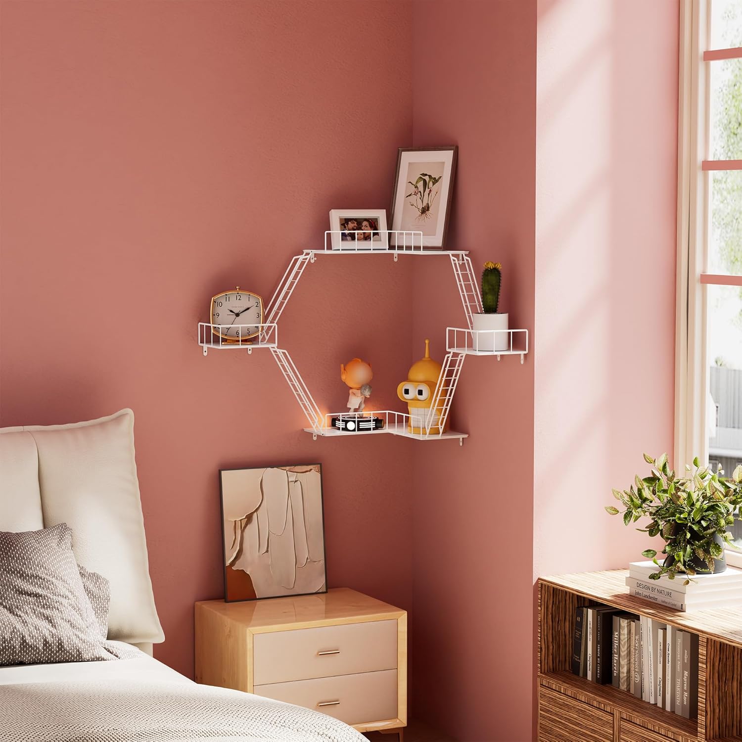- ăEXQUISITE CORNER SHELFăThe 3-tier corner floating shelves provide ample display space, perfect for placing figurines, decorations, knick-knacks, small potted plants or other items, making effective use of wall space to enhance storage and display in your home or office.