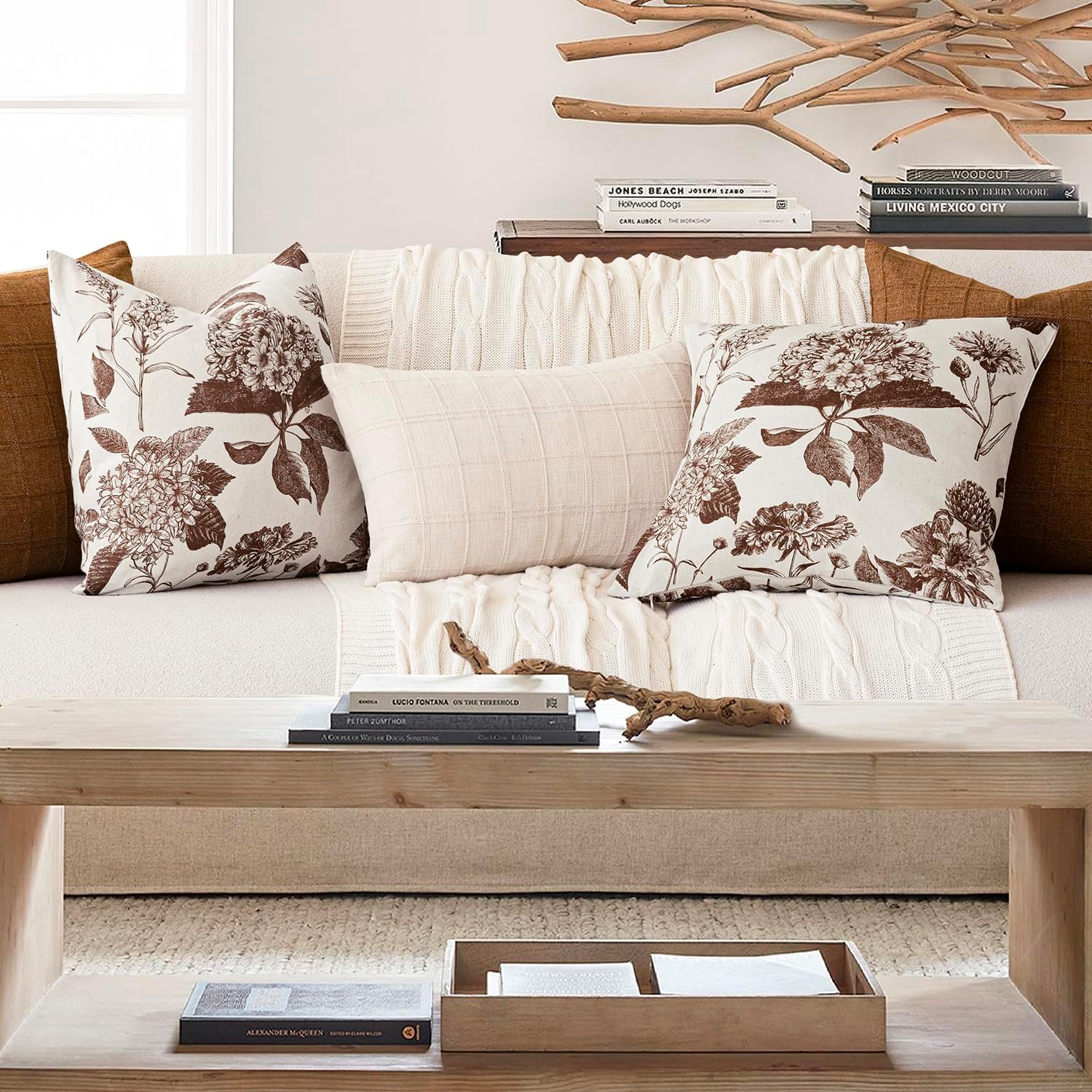 Foindtower Set of 2 Linen Floral Throw Pillow Covers Vintage Accent Print Decorative Cushion Covers Farmhouse Boho Home Decor for Sofa Chair Couch Bedroom Living Room,22×22 Inch,Dark Brown