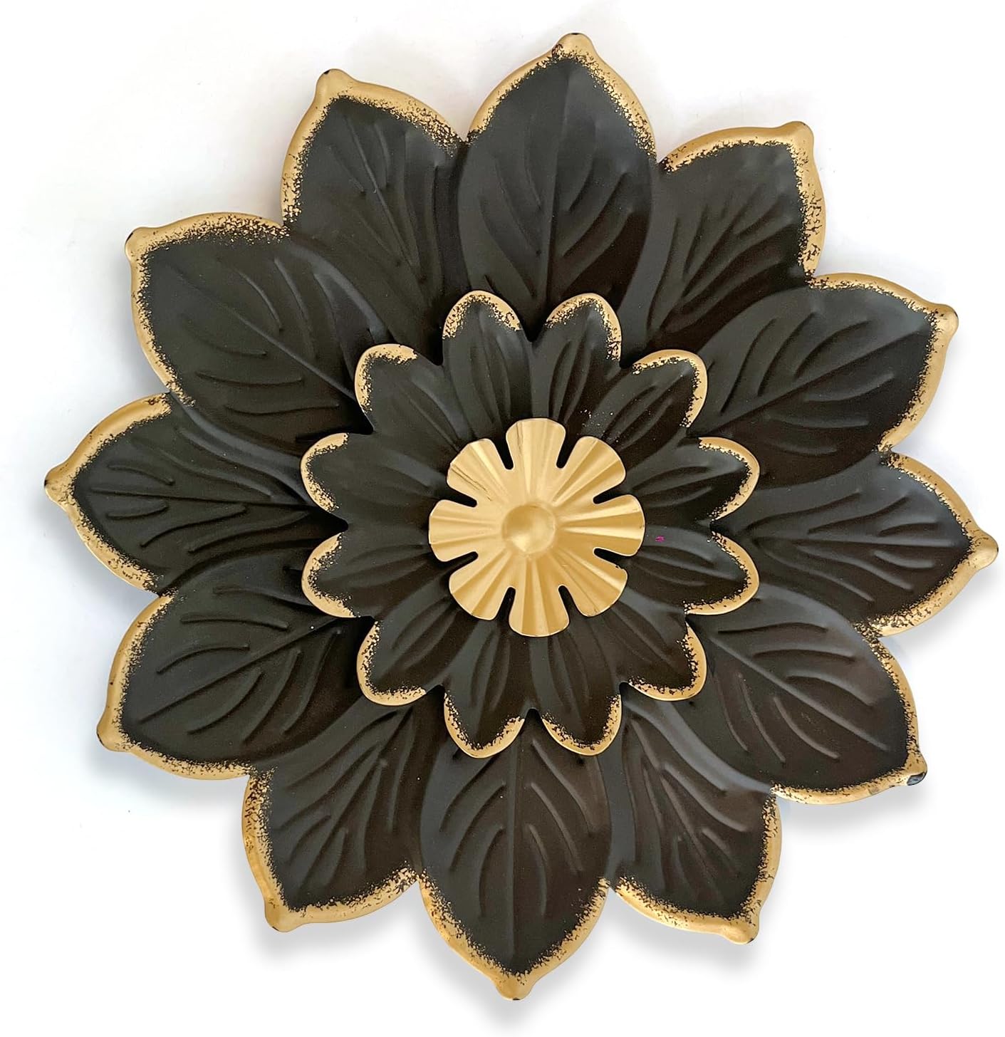 - 3D Textured Metal Flower Design: Crafted from layered molded metal with hand-painted details, this rustic black and gold wall art features lifelike floral depth. The 9.2-inch compact size adds elegance to tight spaces without overwhelming your walls.