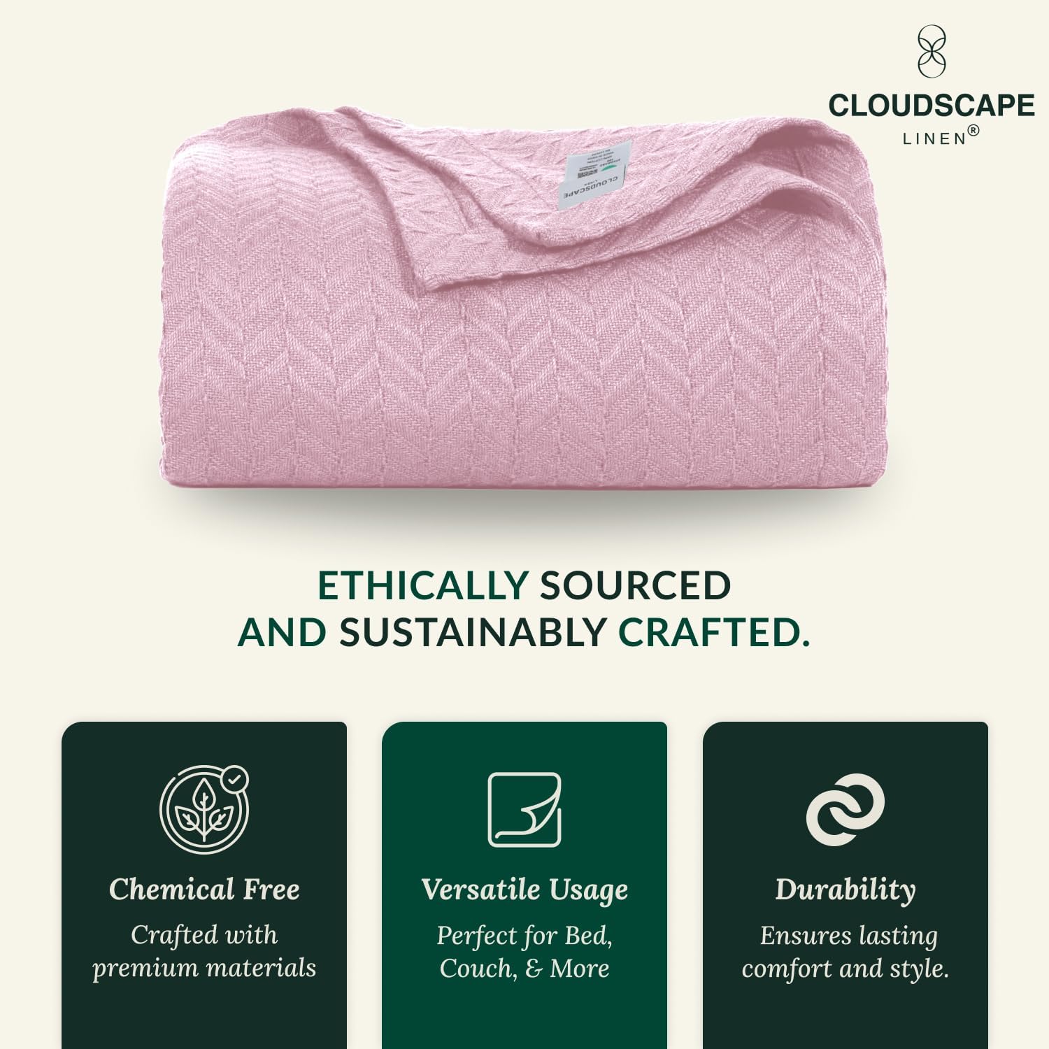 Cloud Scape Linen Herringbone Cotton Twin Blanket for Couch, Bed,Sofa, Home Decor, Soft, Lightweight, All-Season Bed Blanket, 68 x92, Seashell Pink