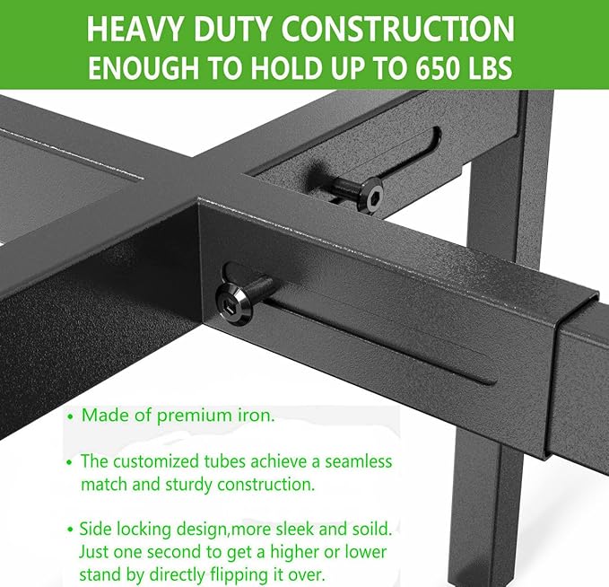 - 【2 Heights Display】- Total Height: 15”. Side locking design, more sleek and solid. Just one second to get a higher or lower stand by directly flipping it over. 10” or 6” from the ground? You decide!