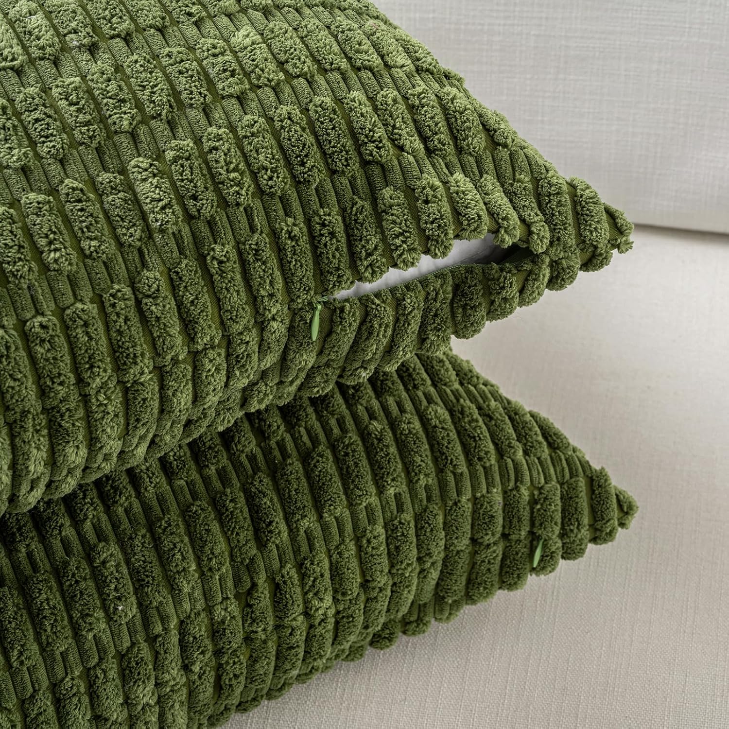 Fancy Homi Set of 4 Green Boho Winter Decorative Throw Pillow Covers 26x26 Inch for Couch Bed Sofa, Aesthetic Modern Bohemian Room Decor, Fuzzy Fluffy Cozy Corduroy Textured Cushion Case 66x66cm