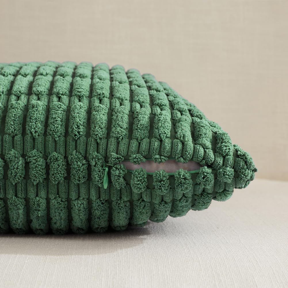 Fancy Homi Set of 4 Green Lumbar Rectangle Decorative Throw Pillow Covers 16x24 Inch for Couch Bed Chair, Aesthetic Boho Room Decor, Soft Fuzzy Thick Corduroy Textured Cushion Case 40x60cm