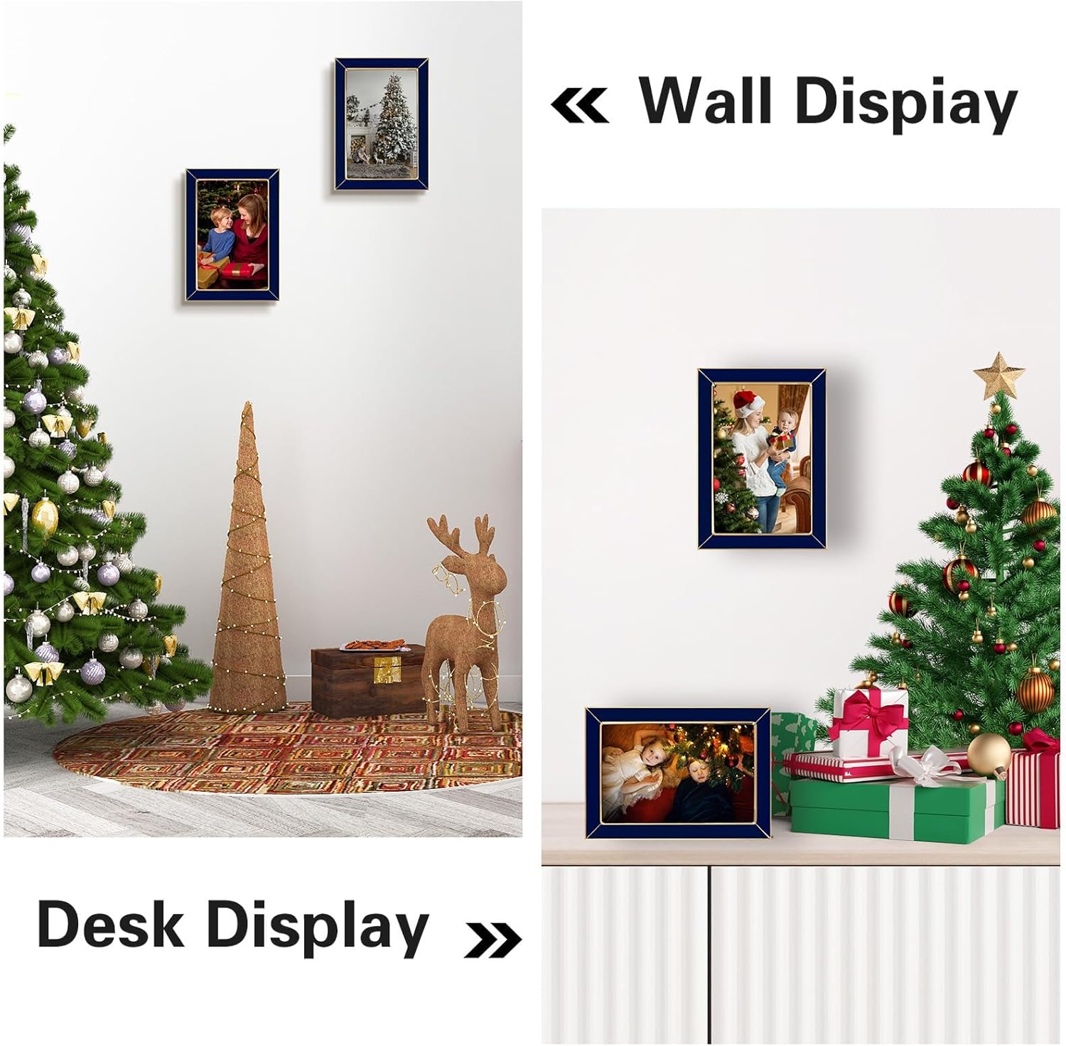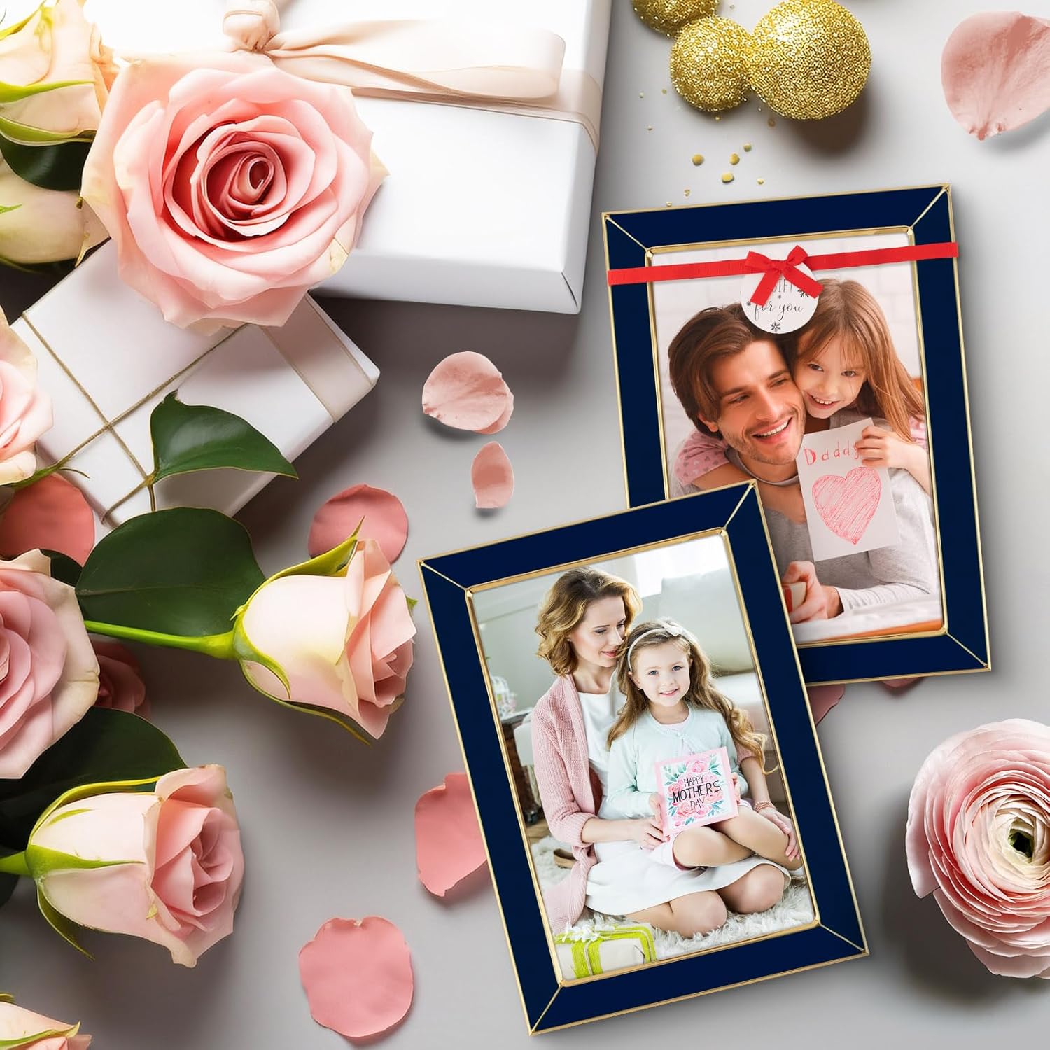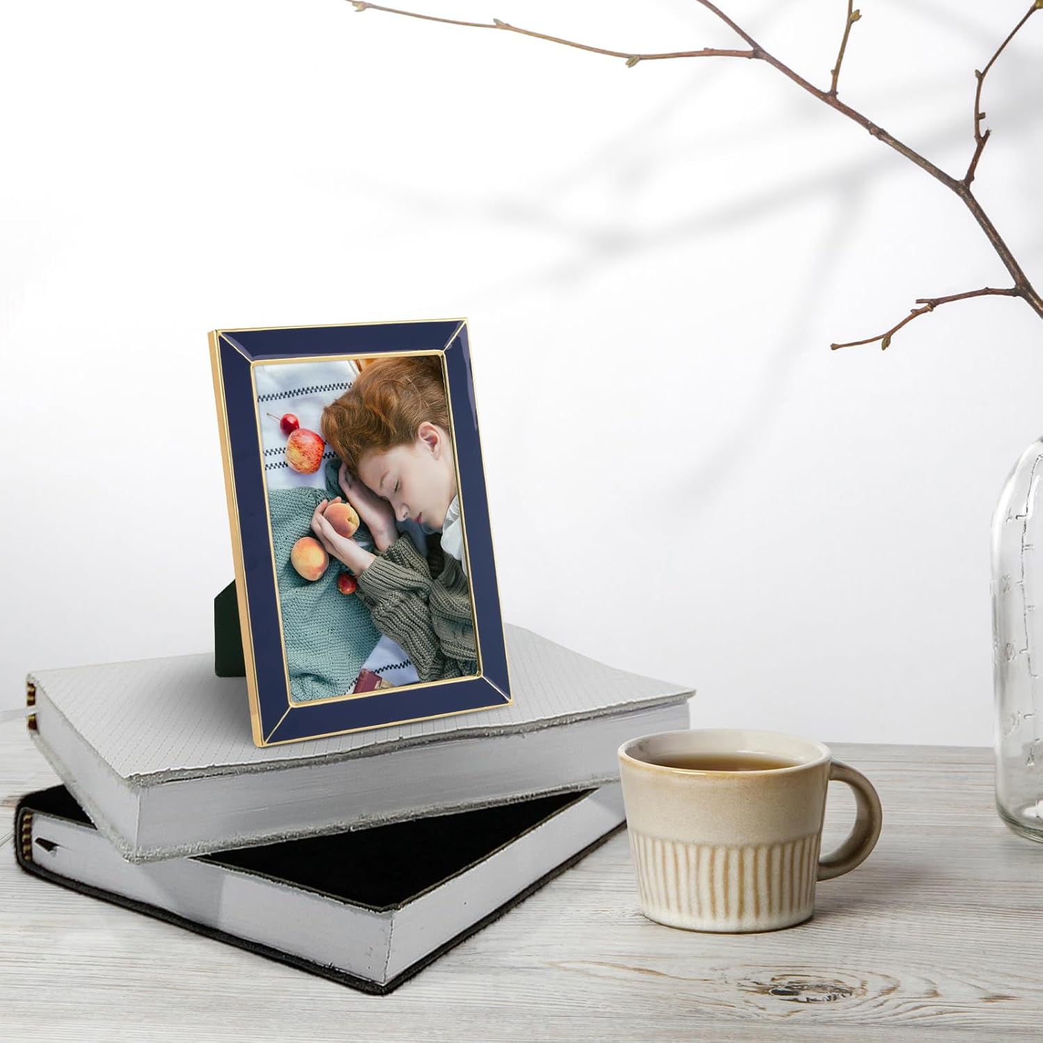 Frametory Enamel Picture Frame - 4x6 Gold Metal Edge Navy Blue Enamel Picture Frame With Easel and Velvet Back for Tabletop Display, Bookshelf, 4x6 Wall Decor, Photo Frames, Picture Display-2 Set