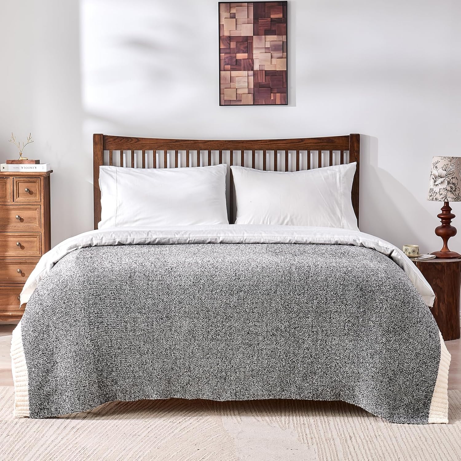 CozeCube Super Soft Fullfy Microfiber Reversible Knitted Blankets, Warm Cozy Fuzzy Plush Throw, Black and White Melange Throw Blanket for Couch Bed Sofa, 50" x 60"