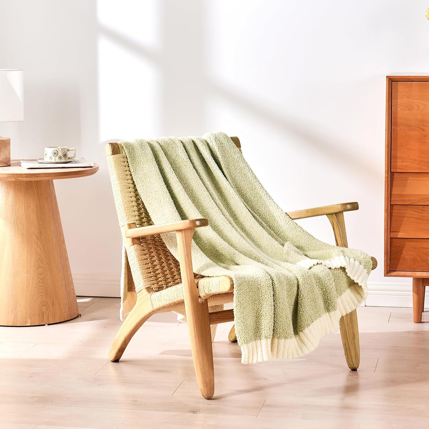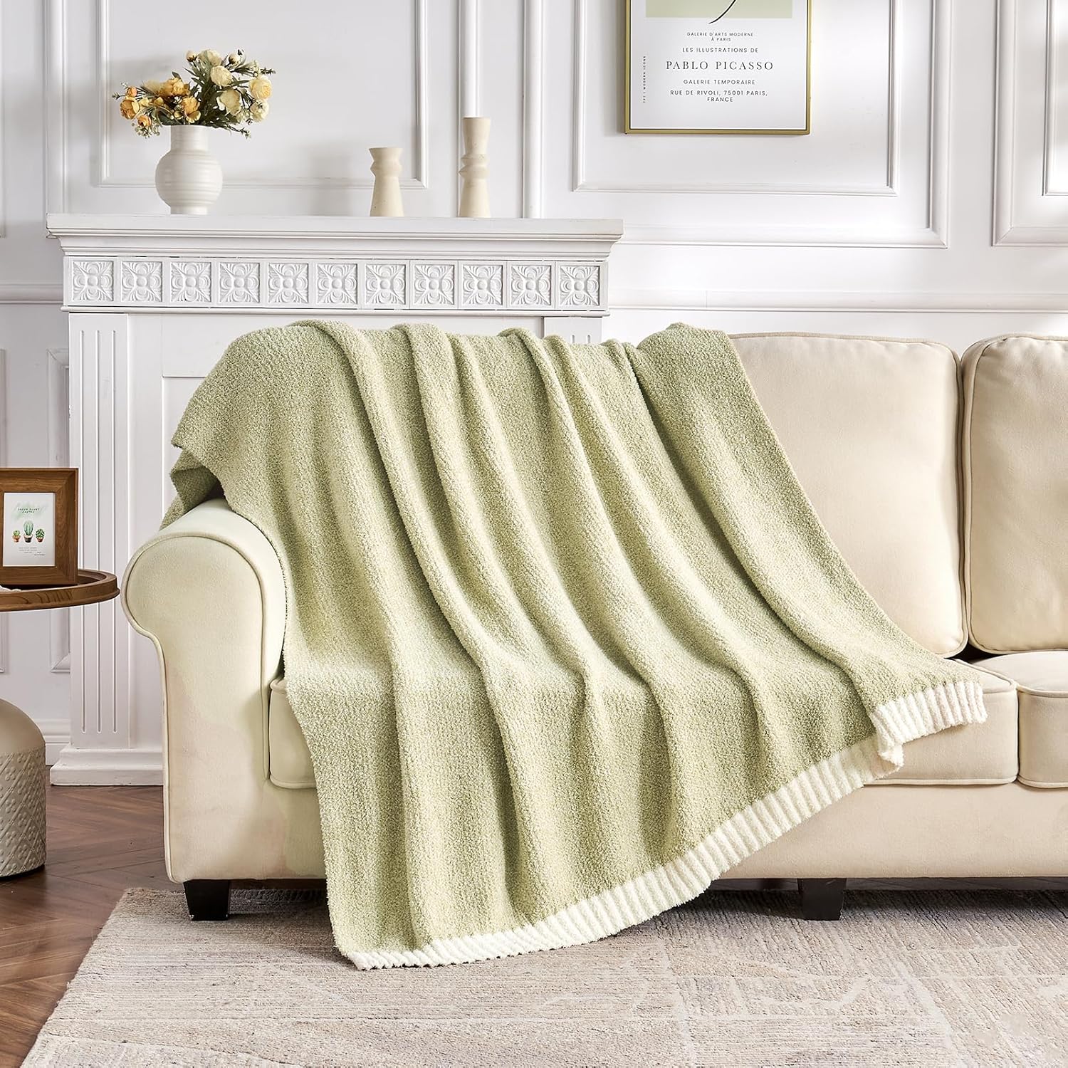 CozeCube Super Soft Fullfy Microfiber Reversible Knitted Blankets, Warm Cozy Fuzzy Plush Throw, Sage Green and White Melange Throw Blanket for Couch Bed Sofa, 60" x 80"