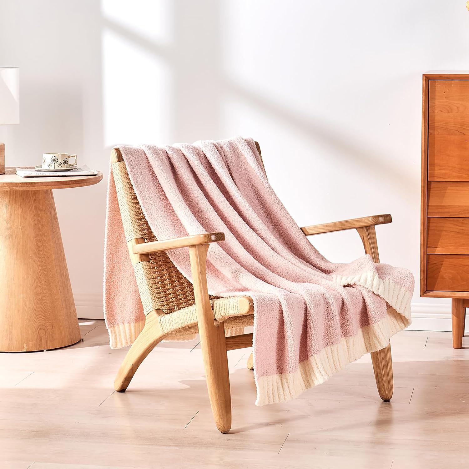 CozeCube Super Soft Fullfy Microfiber Reversible Knitted Blankets, Warm Cozy Fuzzy Plush Throw, Pink and White Melange Throw Blanket for Couch Bed Sofa, 50" x 60"