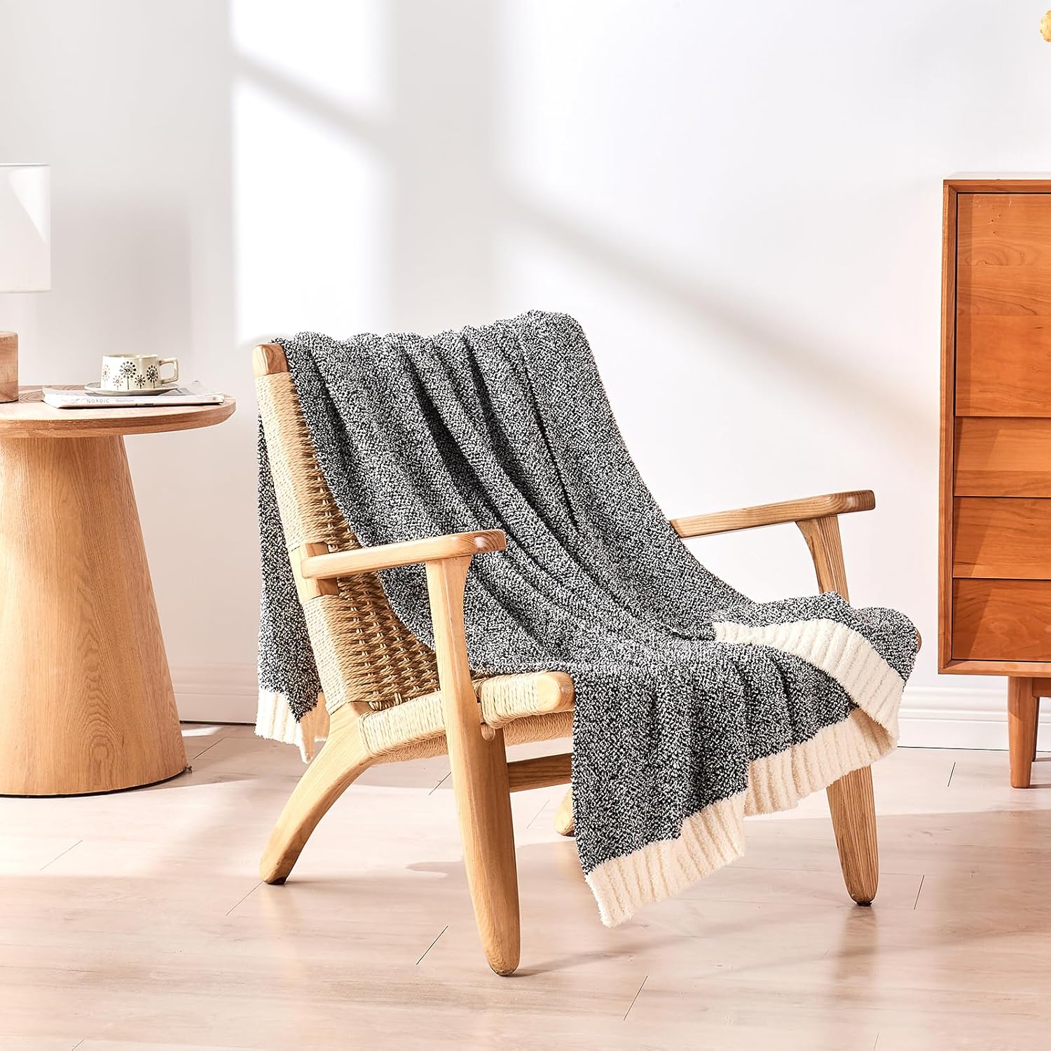 CozeCube Super Soft Fullfy Microfiber Reversible Knitted Blankets, Warm Cozy Fuzzy Plush Throw, Black and White Melange Throw Blanket for Couch Bed Sofa, 60" x 80"
