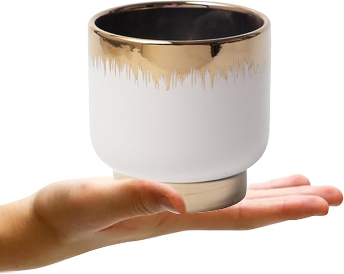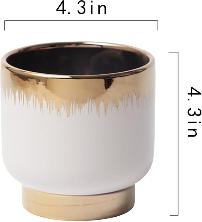 LB White Gold Ceramic Plant Pot for Indoor Plants, Succulent Planters Ceramic Plant Pots, Modern Flower Pots for Living Room Office Home Decor, Round Flower Pot of 4.3 Inch(Plant Not Included)
