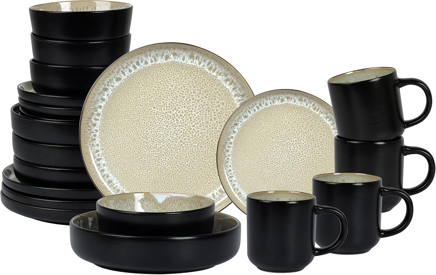 Euro-Nordic Stoneware 20pc Dinnerware Set, Reactive Glaze Bubble Beige