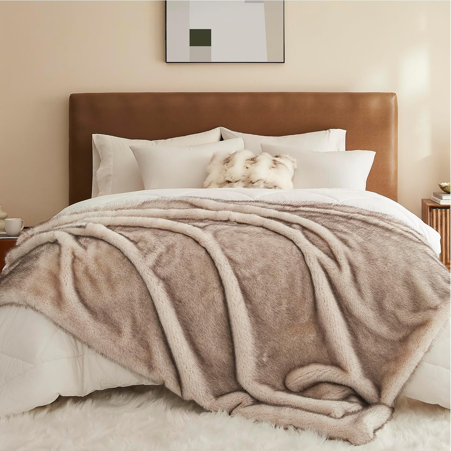 - All-Season Cozy: The fur throw blanket features a dual-sided design for year-round coziness, one side of luxurious fur providing warmth and elegance, while the reverse side is made of smooth velvety flannel, offering a silk-like touch, The breathable and plush construction of this fuzzy blanket maintain balance of warmth and lightness, making it ideal for winter snuggles or breezy summer nights
