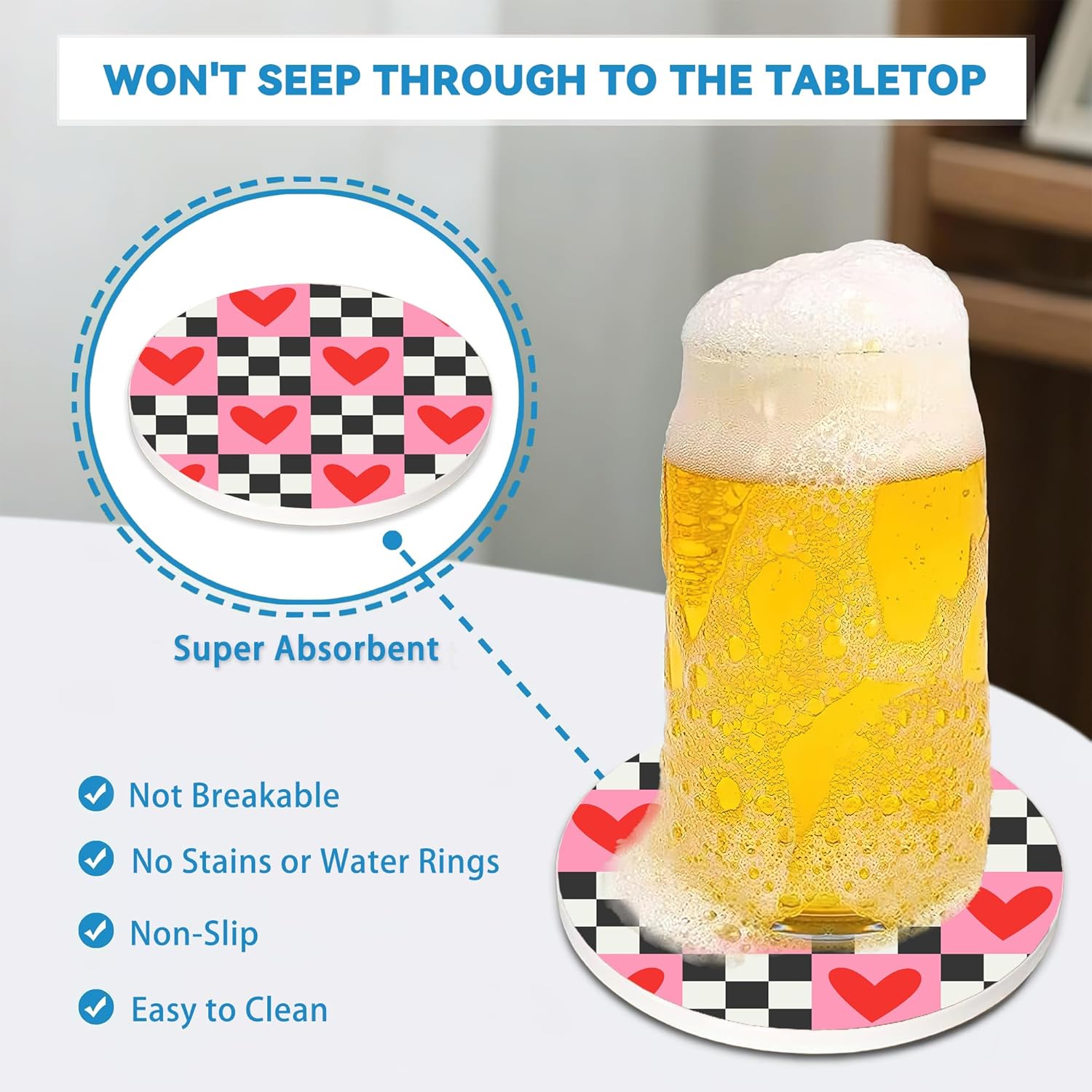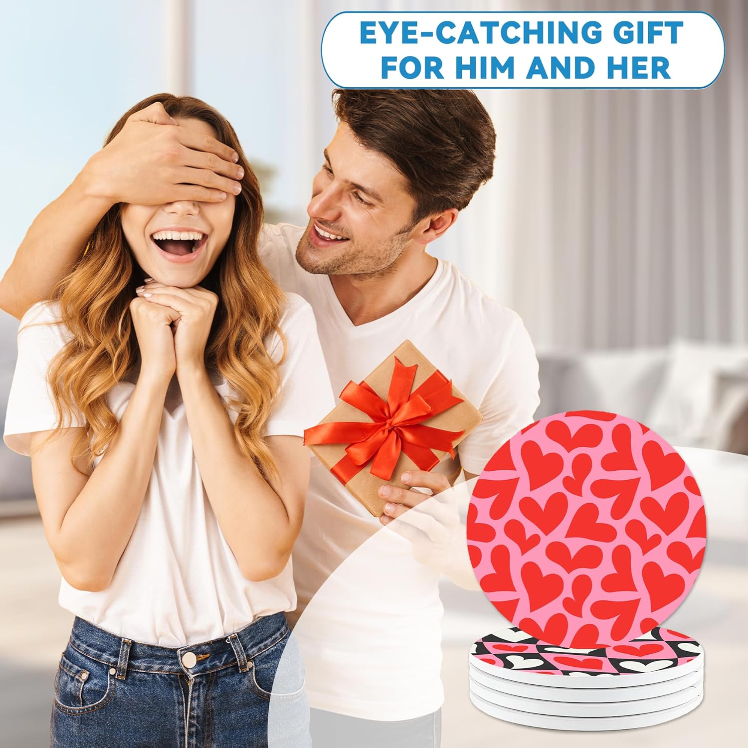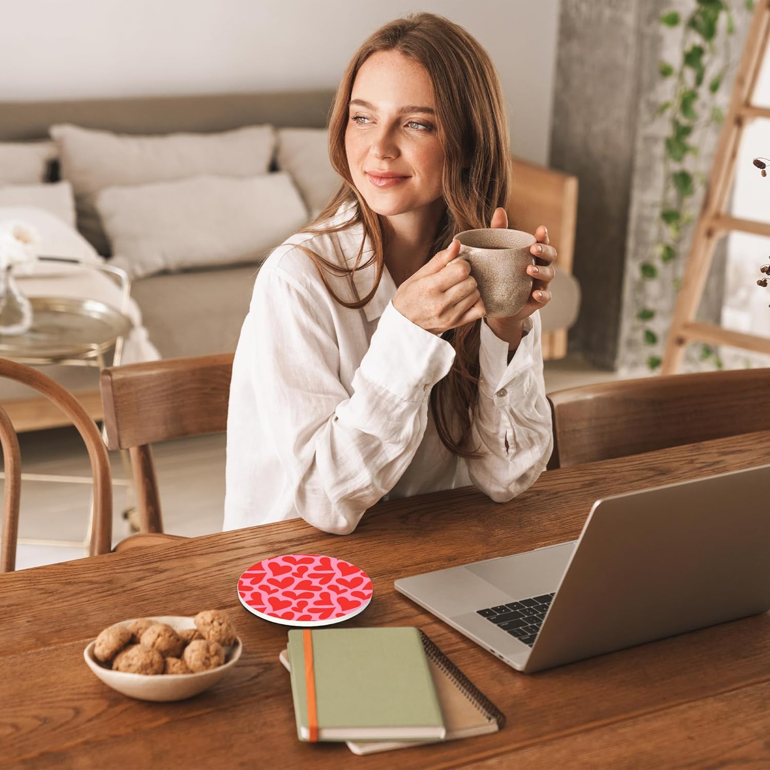 Coasters Set of 4, Pink Round 4" Ceramic & Cork Coasters, Absorbent, Ideal for Table Home Decor & Gifts